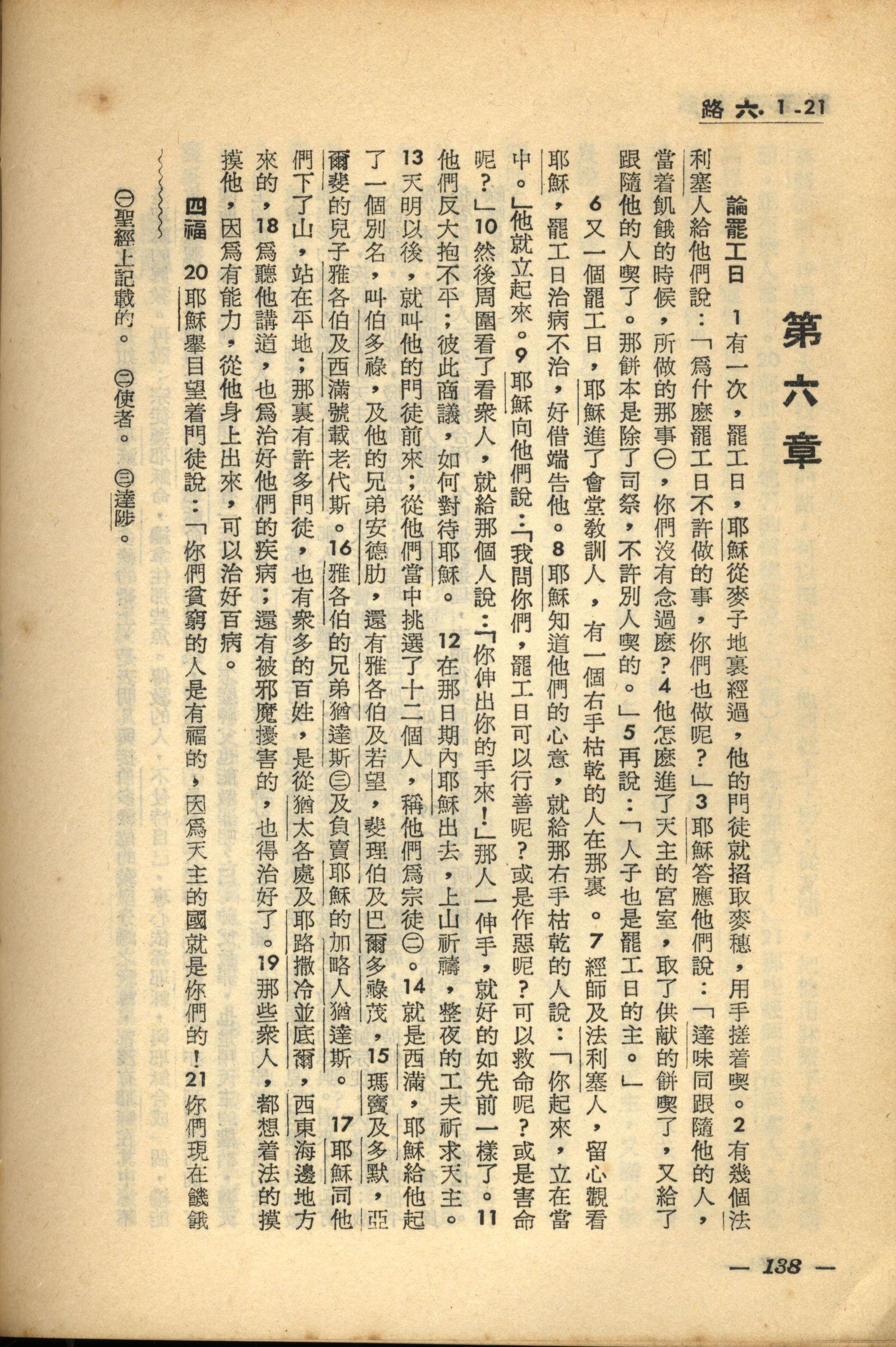 1956年新经全集 路加福音 6 章 1 节到 6 章 21 节