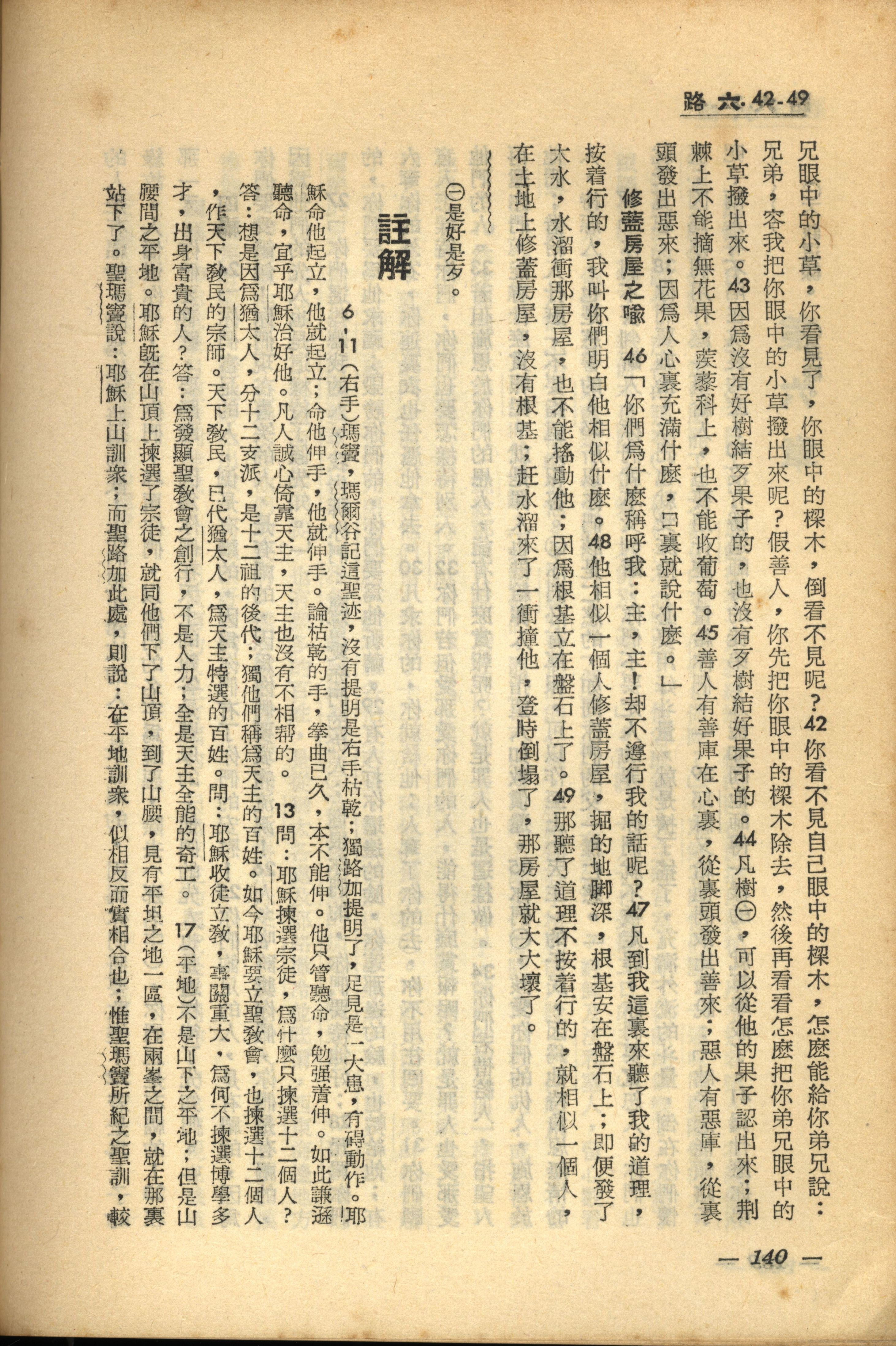 1956年新经全集 路加福音 6 章 42 节到 6 章 49 节