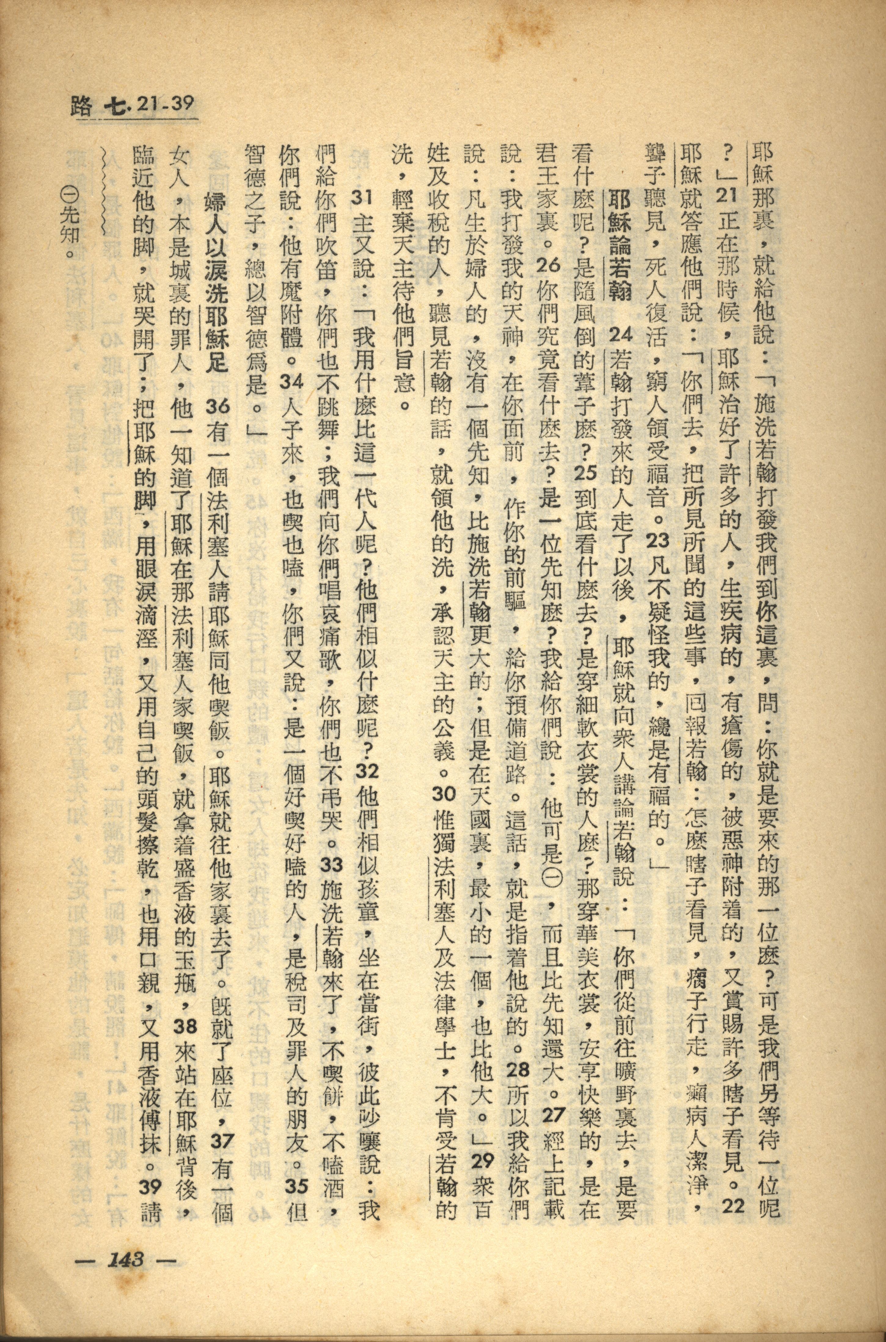 1956年新经全集 路加福音 7 章 21 节到 7 章 39 节