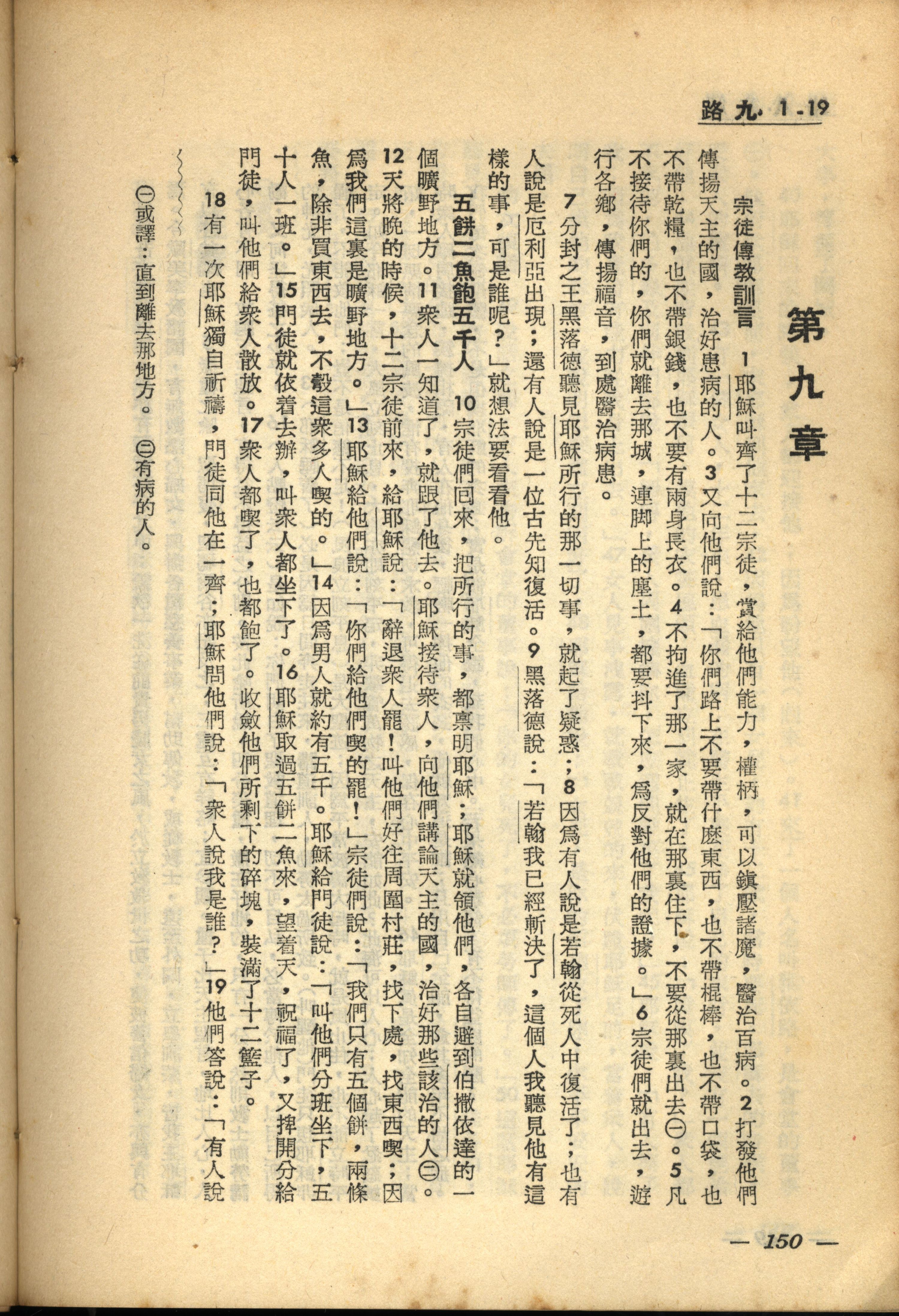 1956年新经全集 路加福音 9 章 1 节到 9 章 19 节