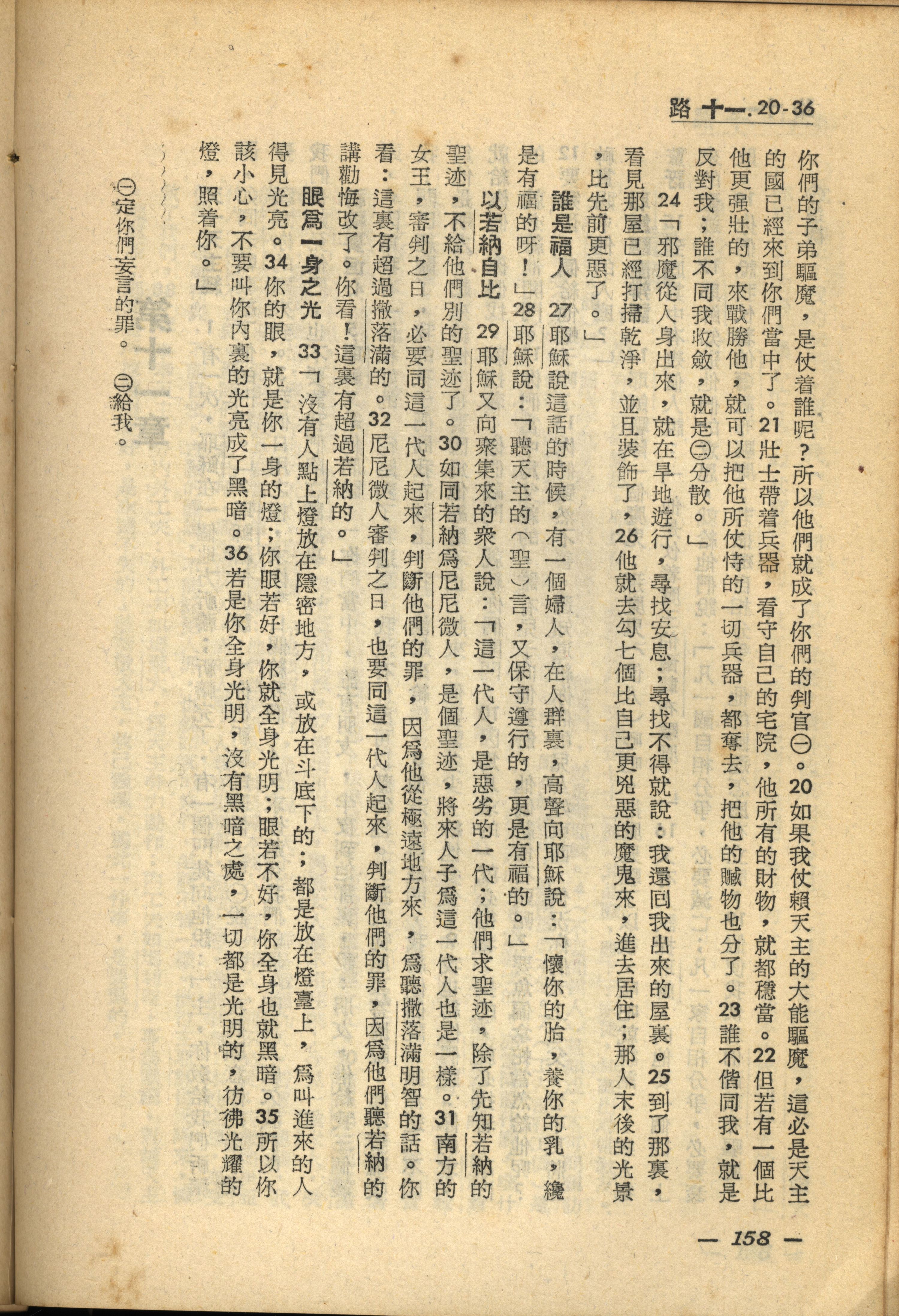 1956年新经全集 路加福音 11 章 20 节到 11 章 36 节