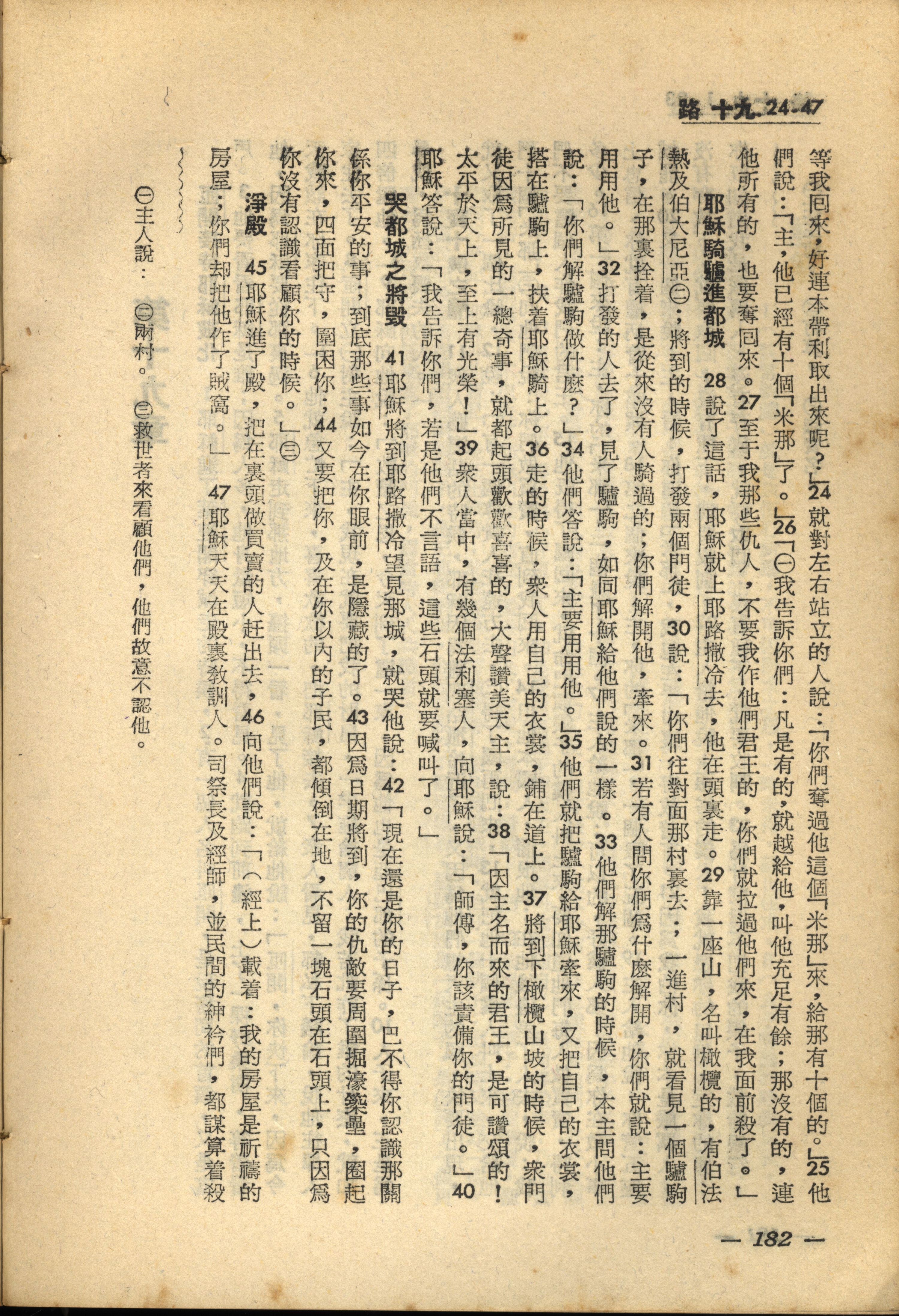 1956年新经全集 路加福音 19 章 24 节到 19 章 47 节