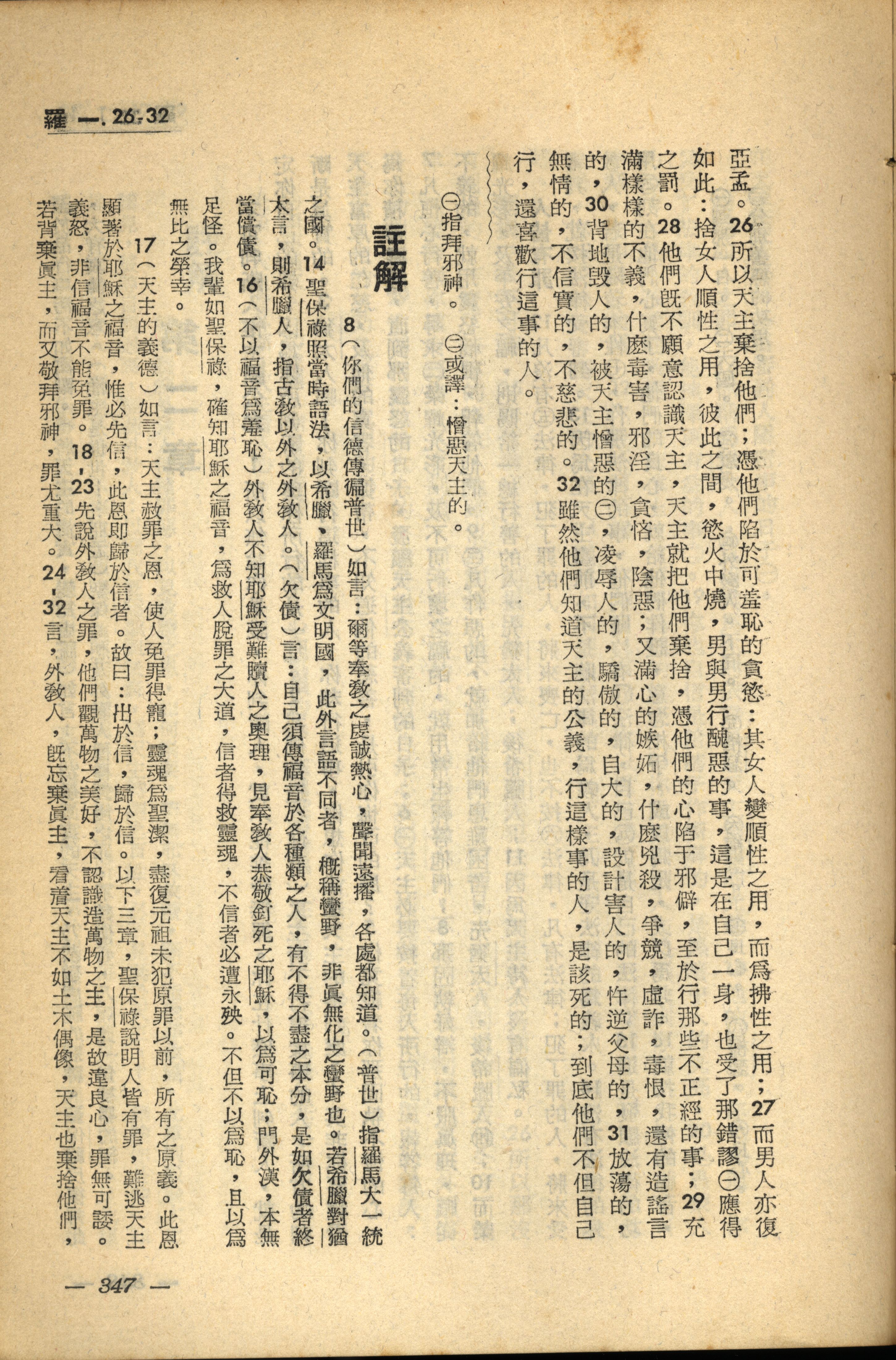1956年新经全集 罗马书 1 章 26 节到 1 章 32 节