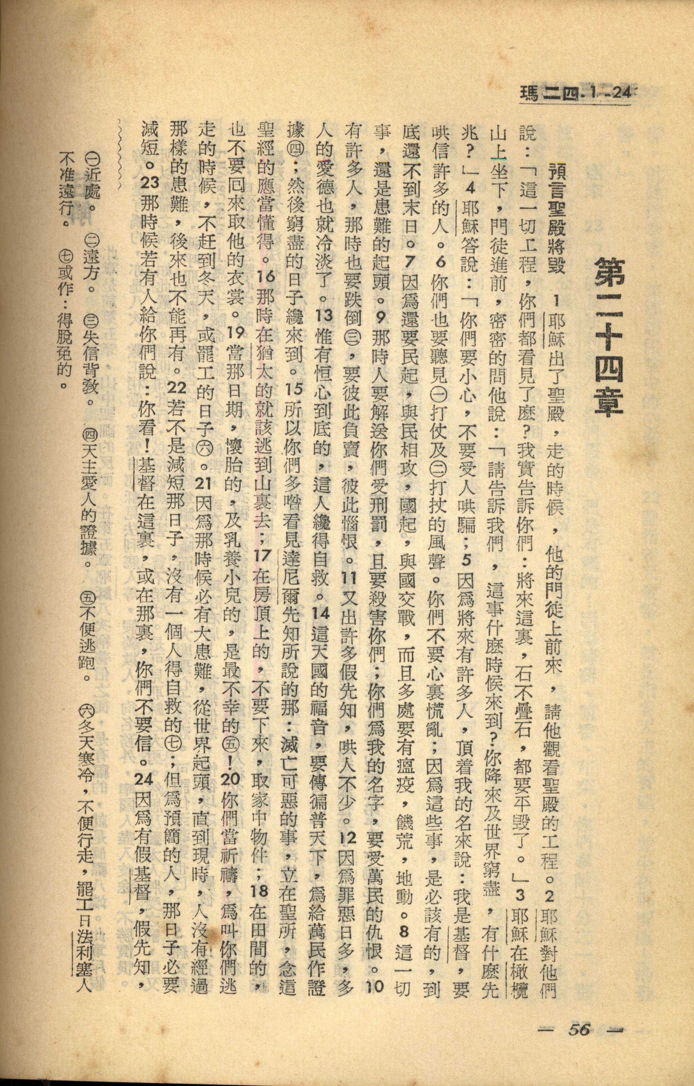 1956年新经全集 马太福音 24 章 1 节到 24 章 24 节