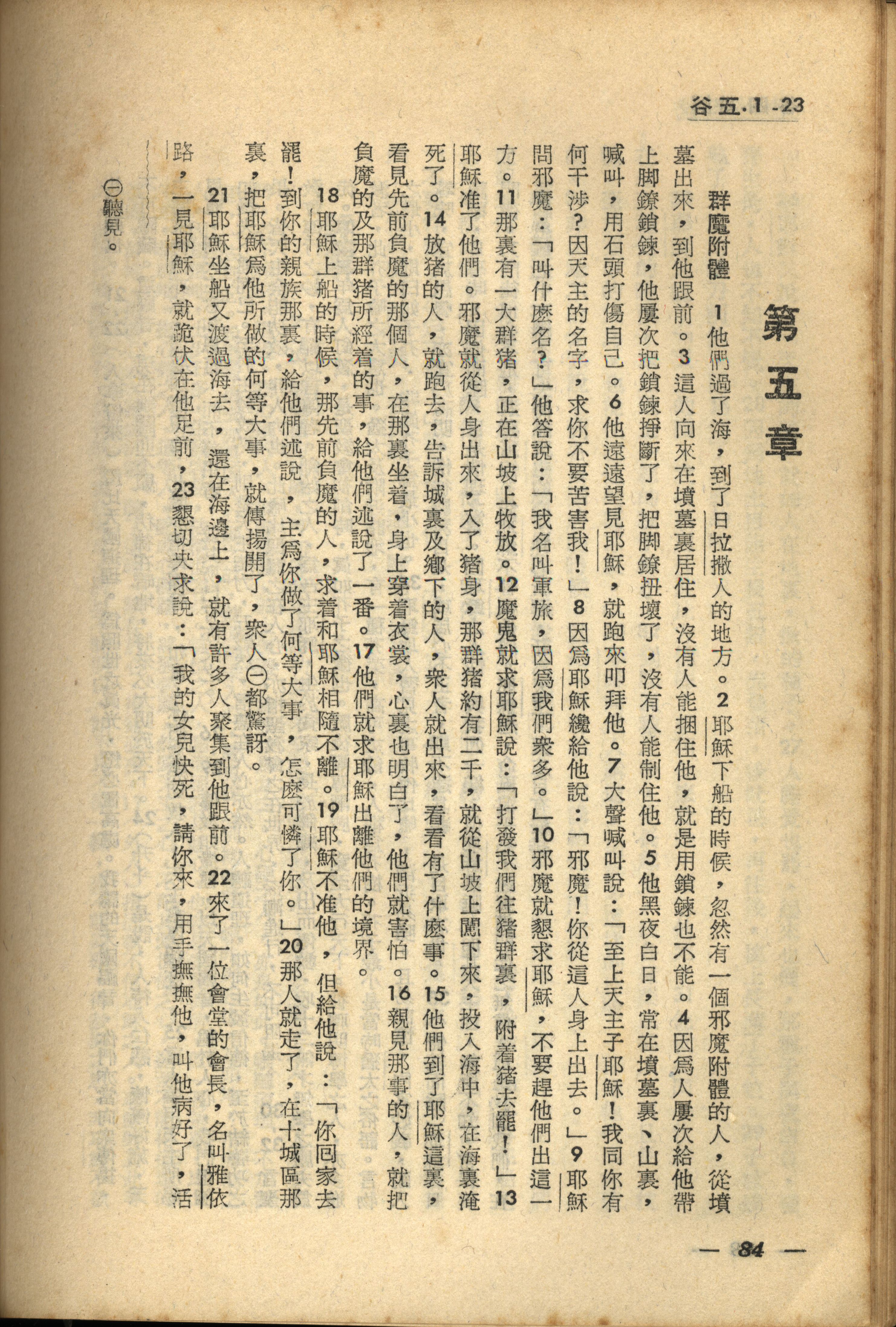 1956年新经全集 马可福音 5 章 1 节到 5 章 23 节
