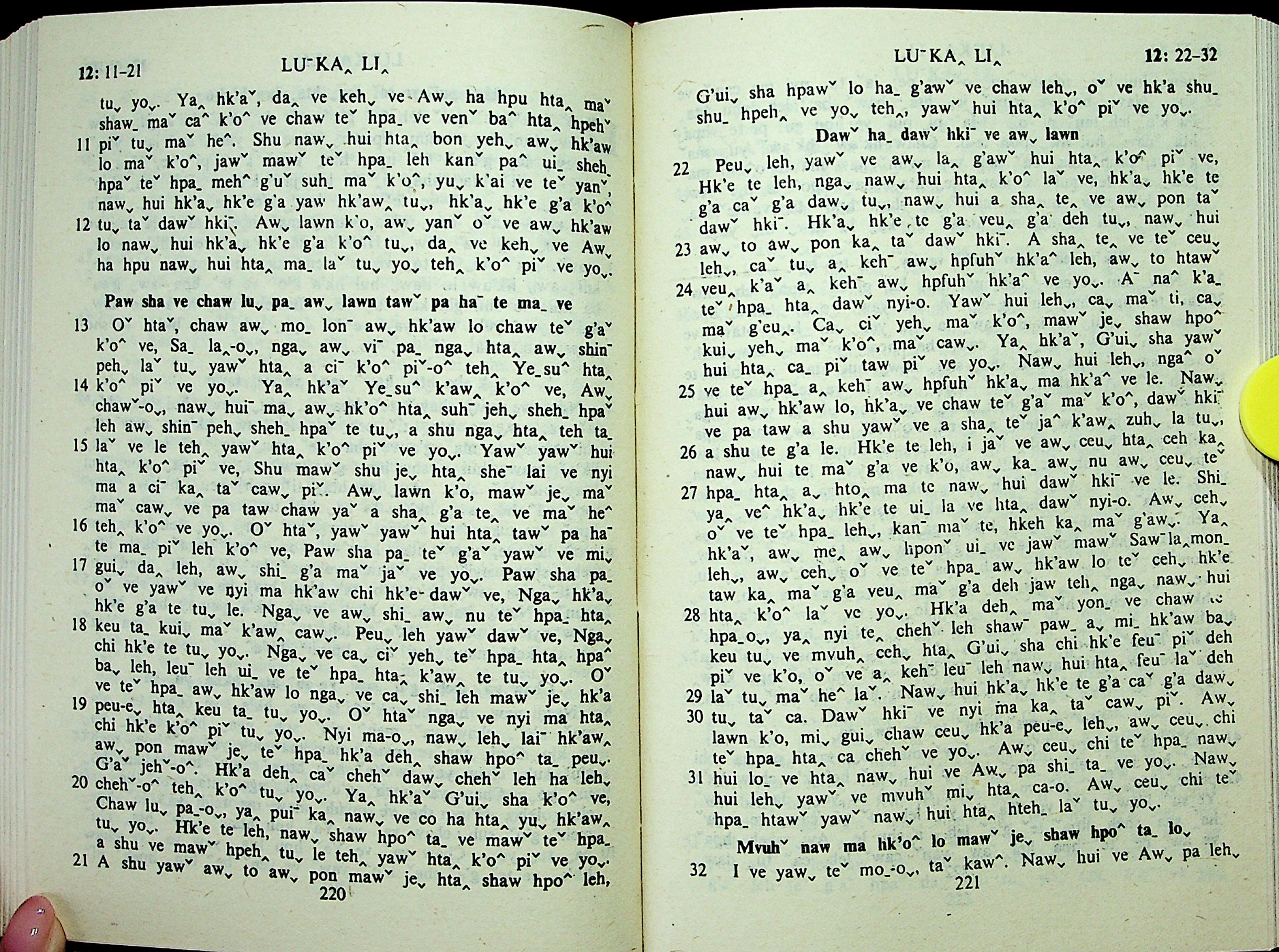 1985年拉祜文新约全书 路加福音 12 章 11 节到 12 章 32 节