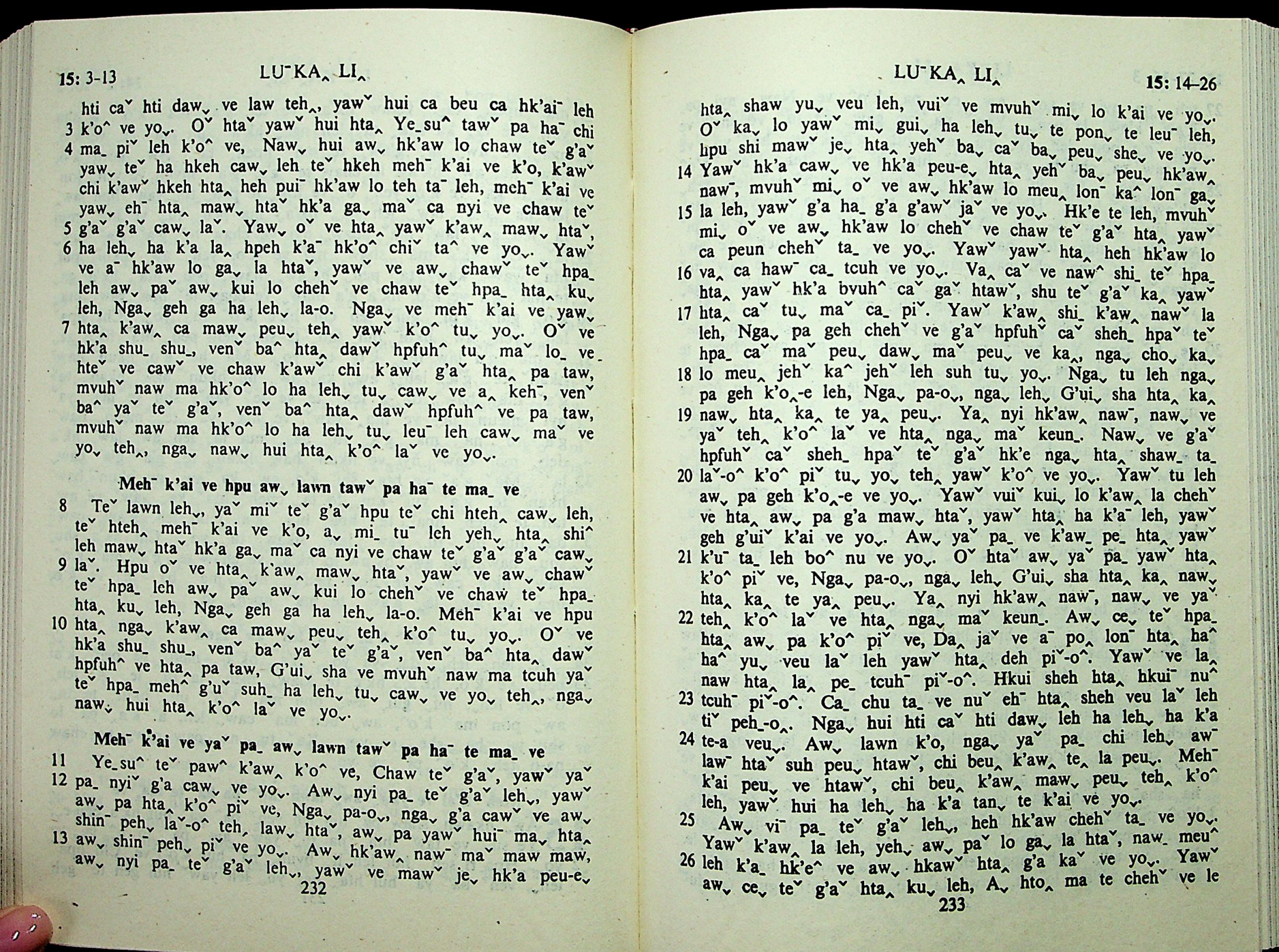 1985年拉祜文新约全书 路加福音 15 章 3 节到 15 章 26 节