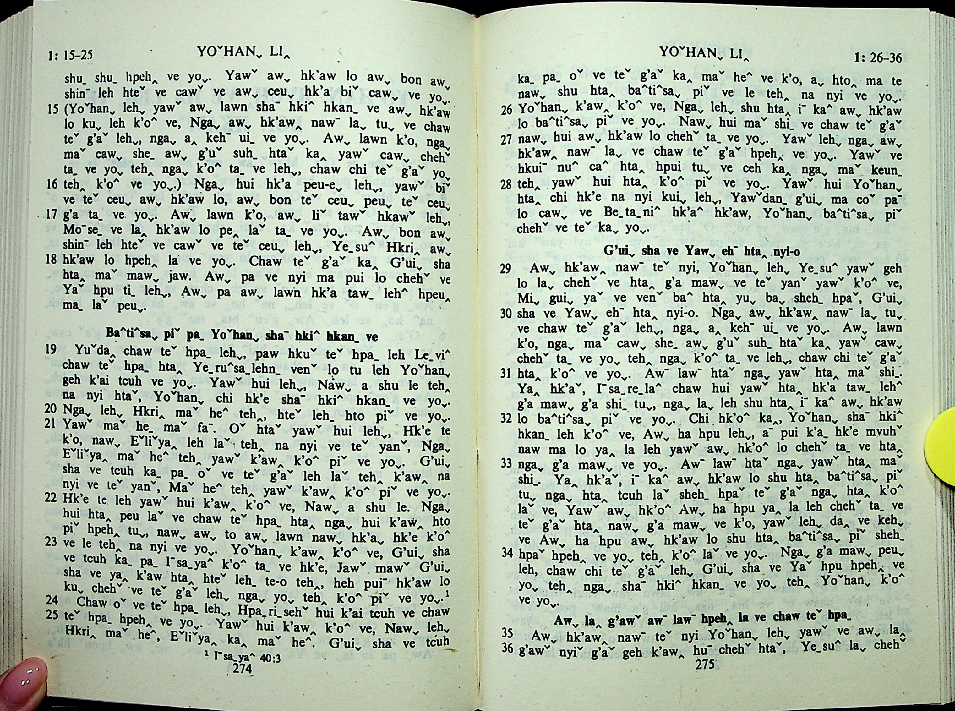 1985年拉祜文新约全书 约翰福音 1 章 15 节到 1 章 36 节
