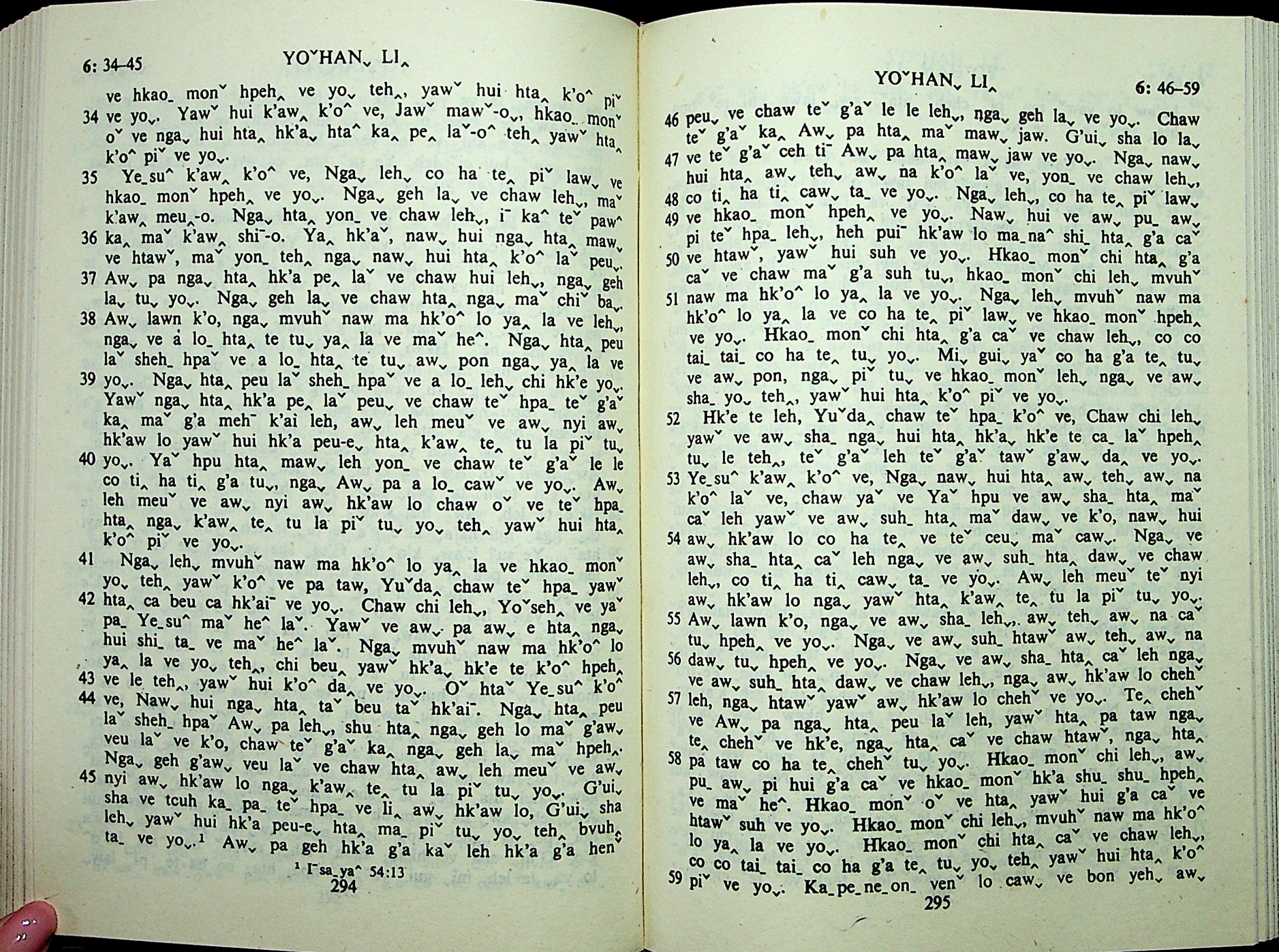 1985年拉祜文新约全书 约翰福音 6 章 34 节到 6 章 59 节