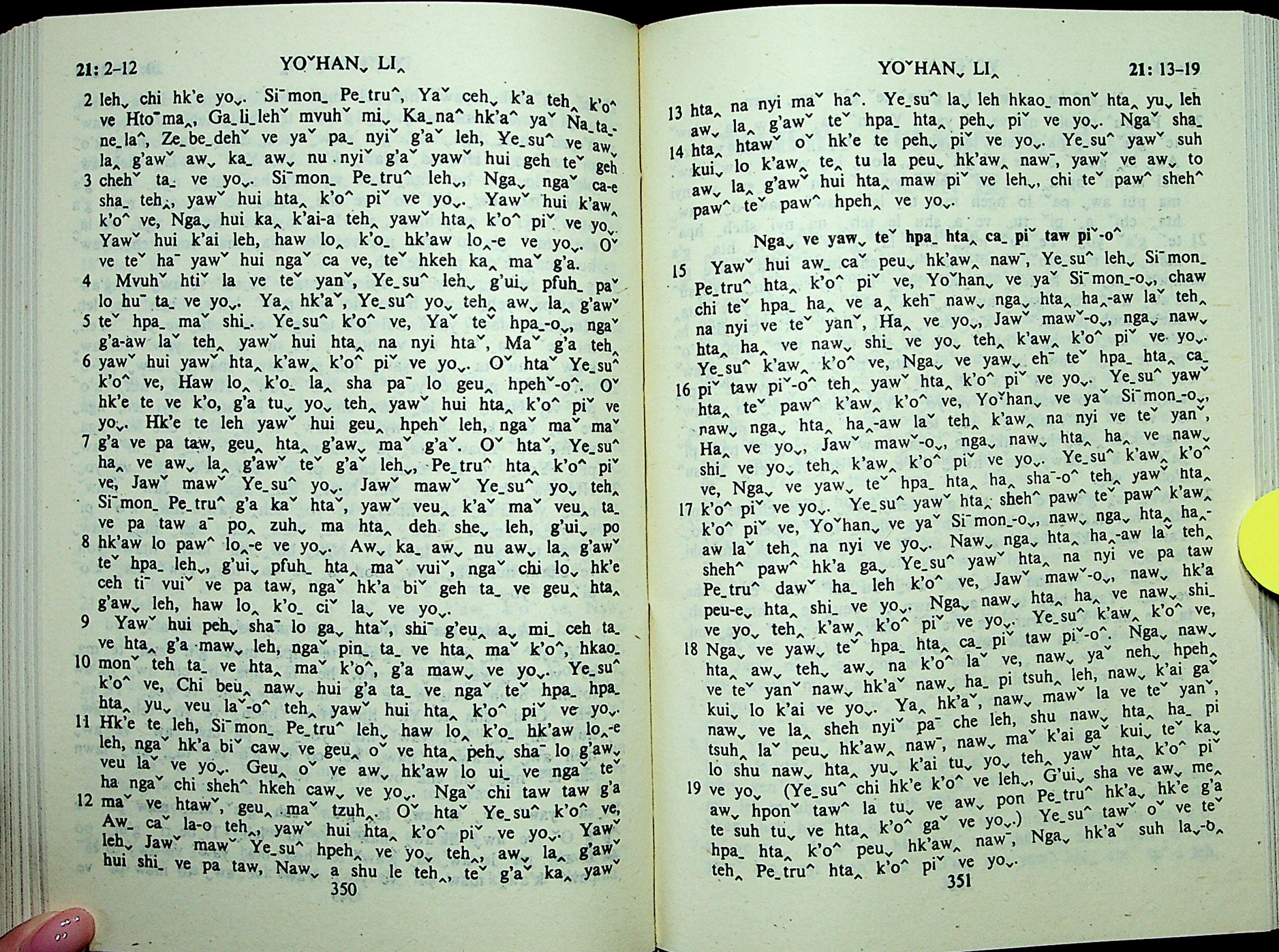1985年拉祜文新约全书 约翰福音 21 章 2 节到 21 章 19 节