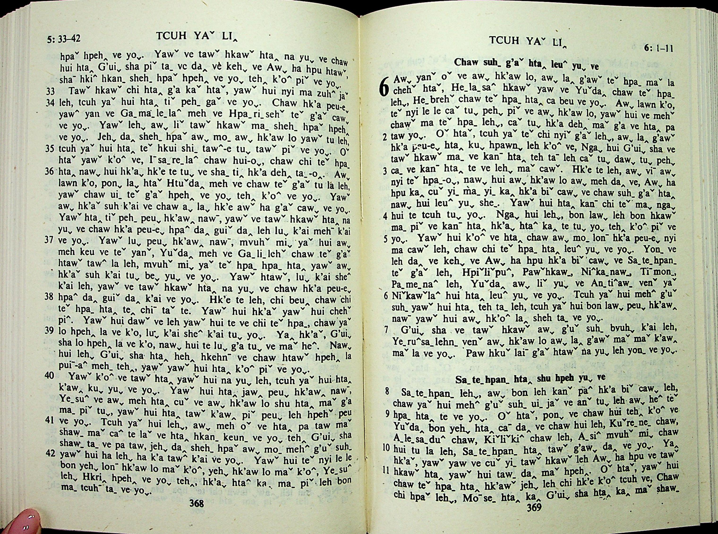 1985年拉祜文新约全书 使徒行传 5 章 33 节到 6 章 11 节