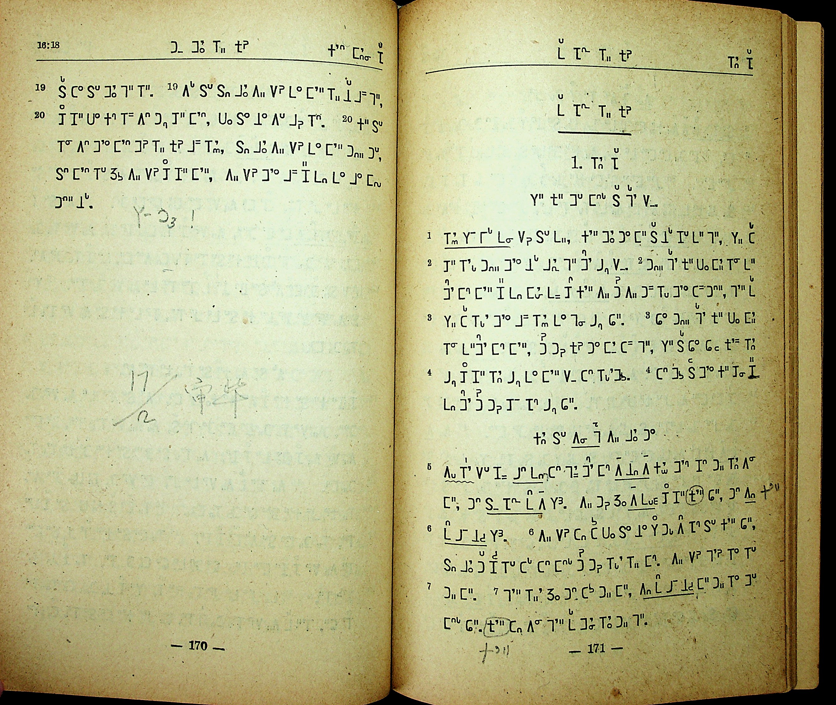 1951年东栗僳新约 马可福音 16 章 19 节到 16 章 20 节