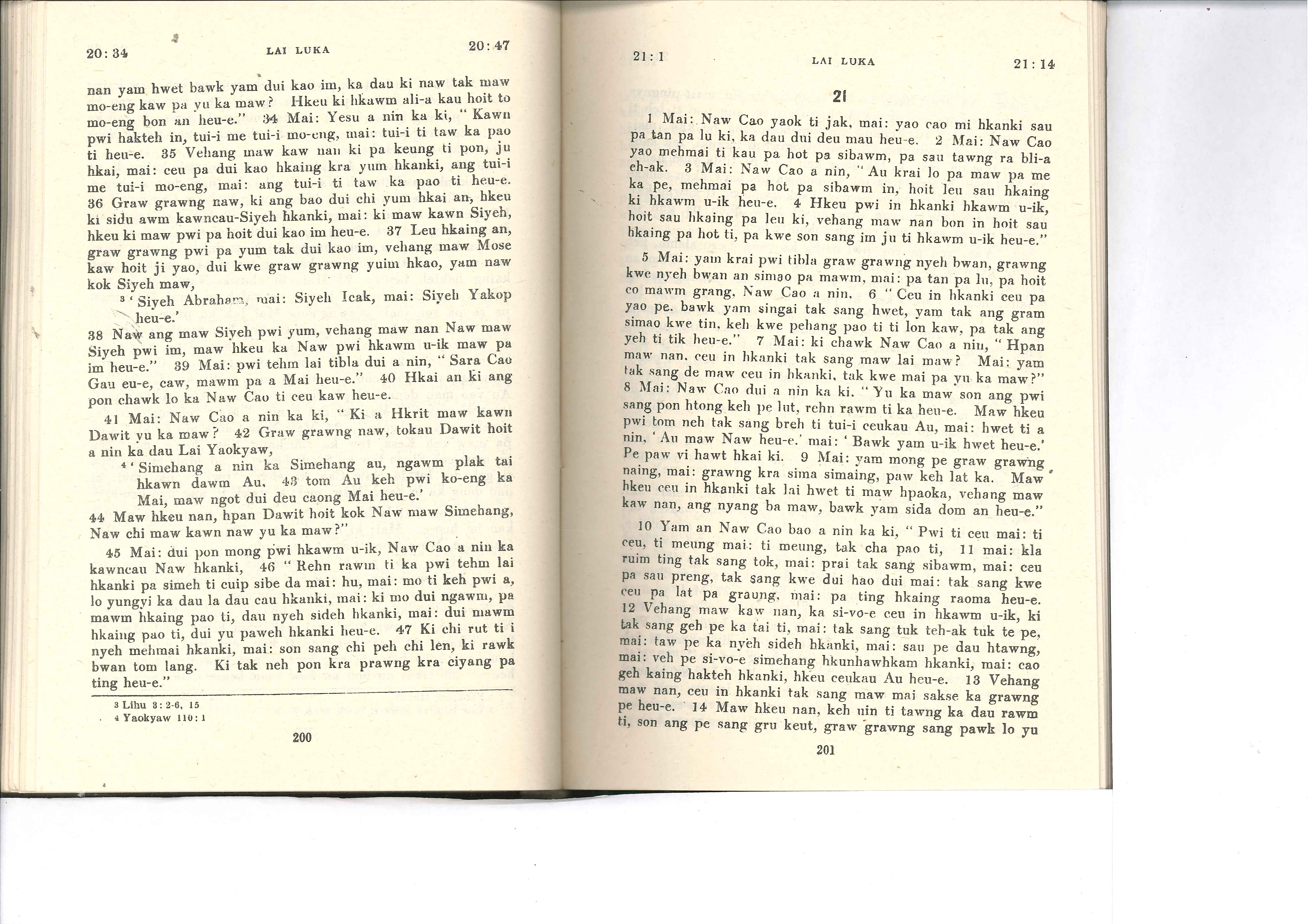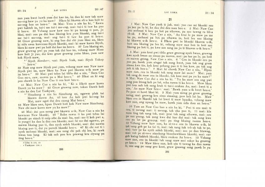 1985年佤文新约全书 路加福音 20 章 34 节到 21 章 14 节