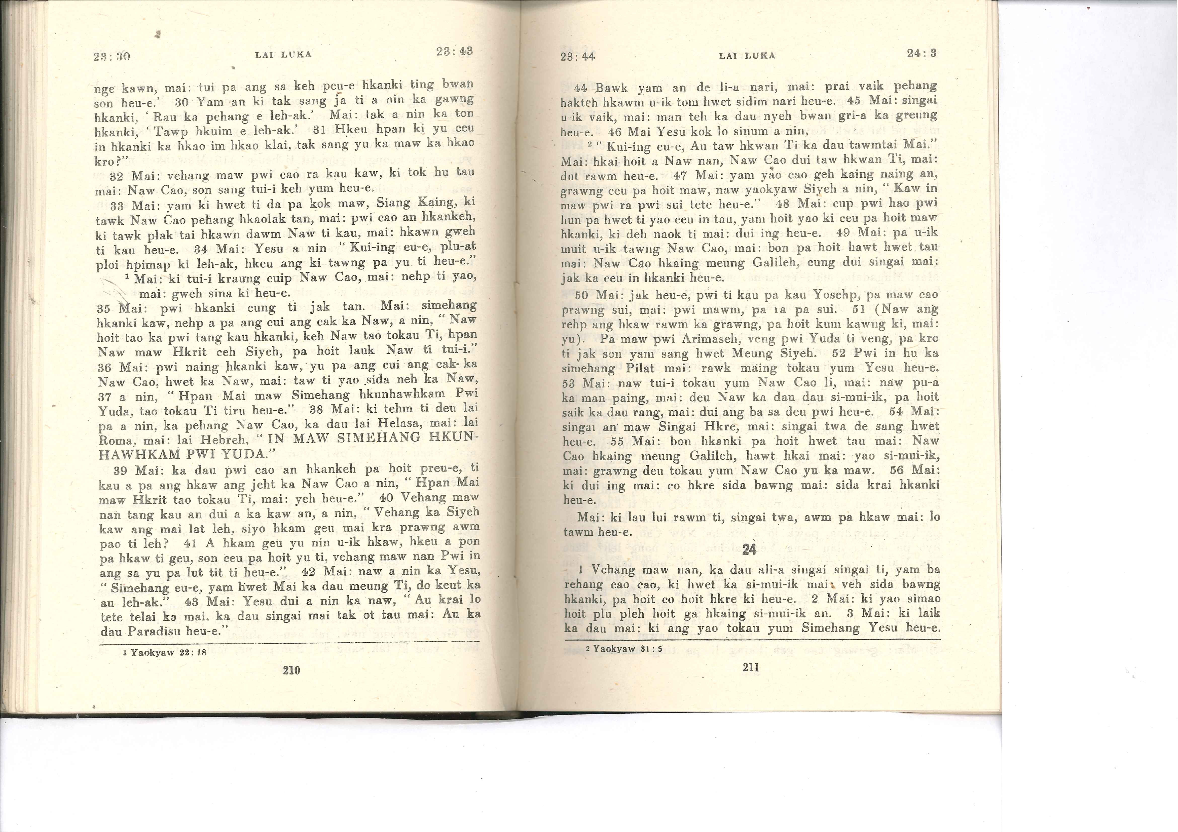 1985年佤文新约全书 路加福音 23 章 30 节到 24 章 3 节