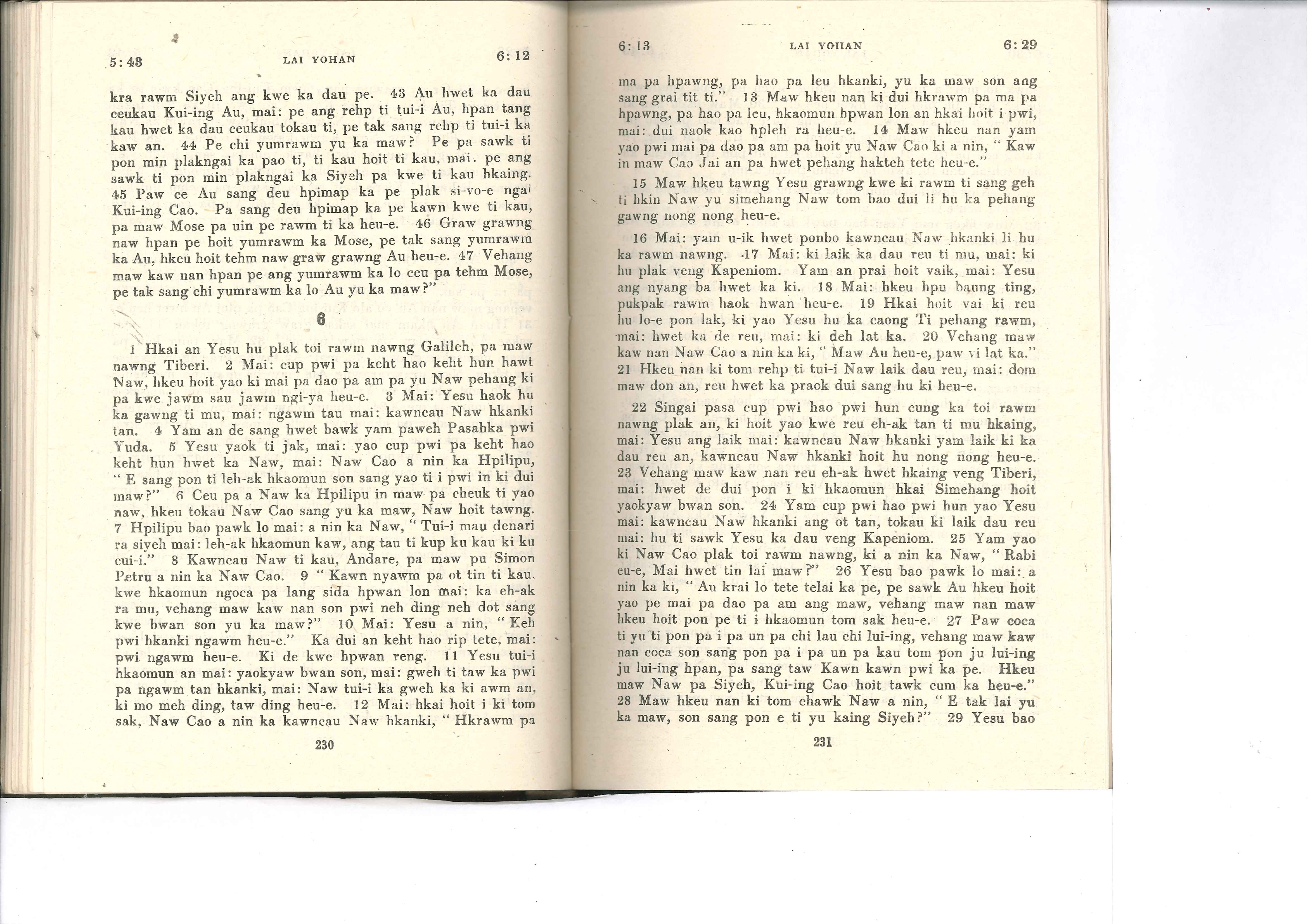 1985年佤文新约全书 约翰福音 5 章 43 节到 6 章 29 节
