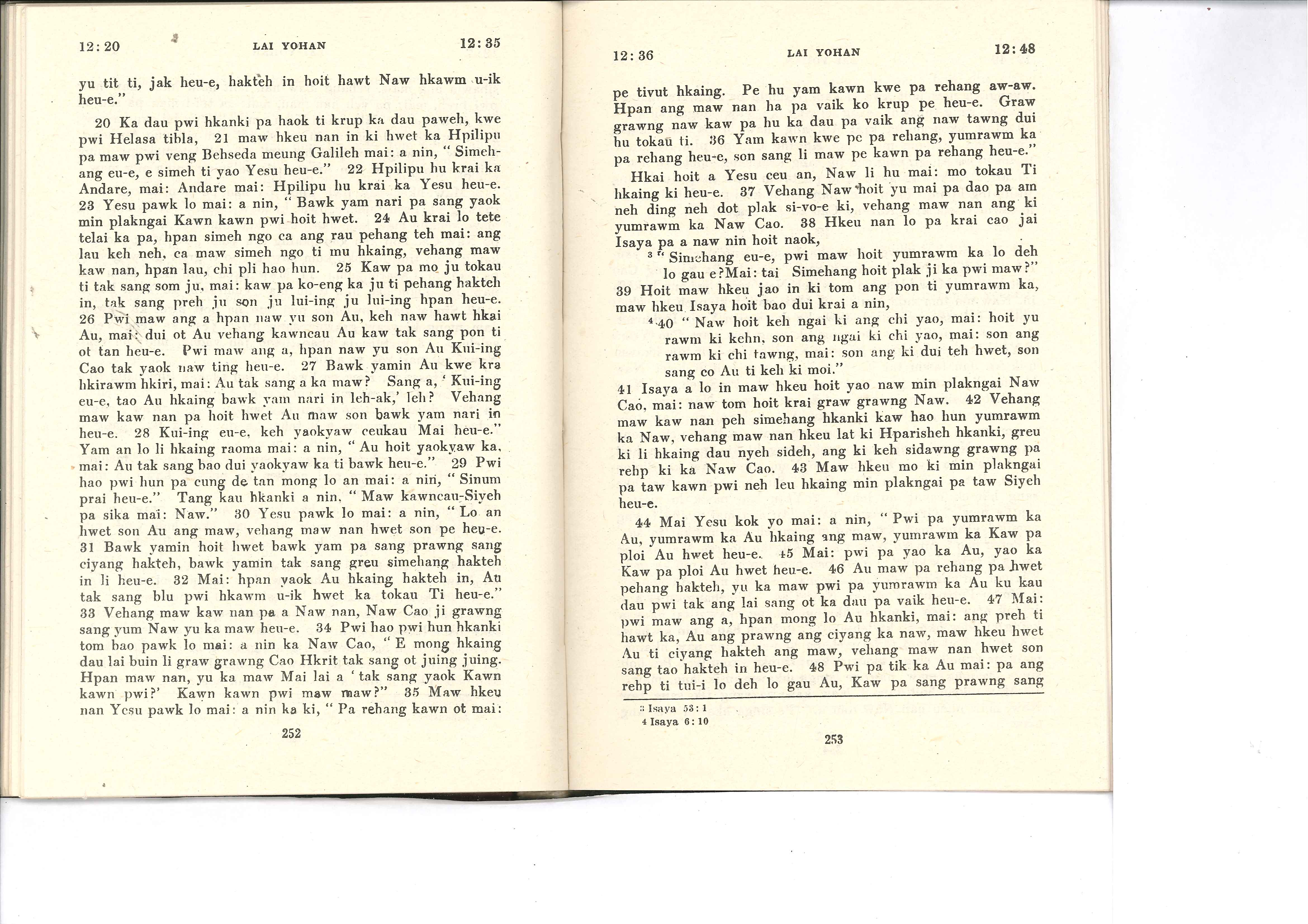 1985年佤文新约全书 约翰福音 12 章 20 节到 12 章 48 节