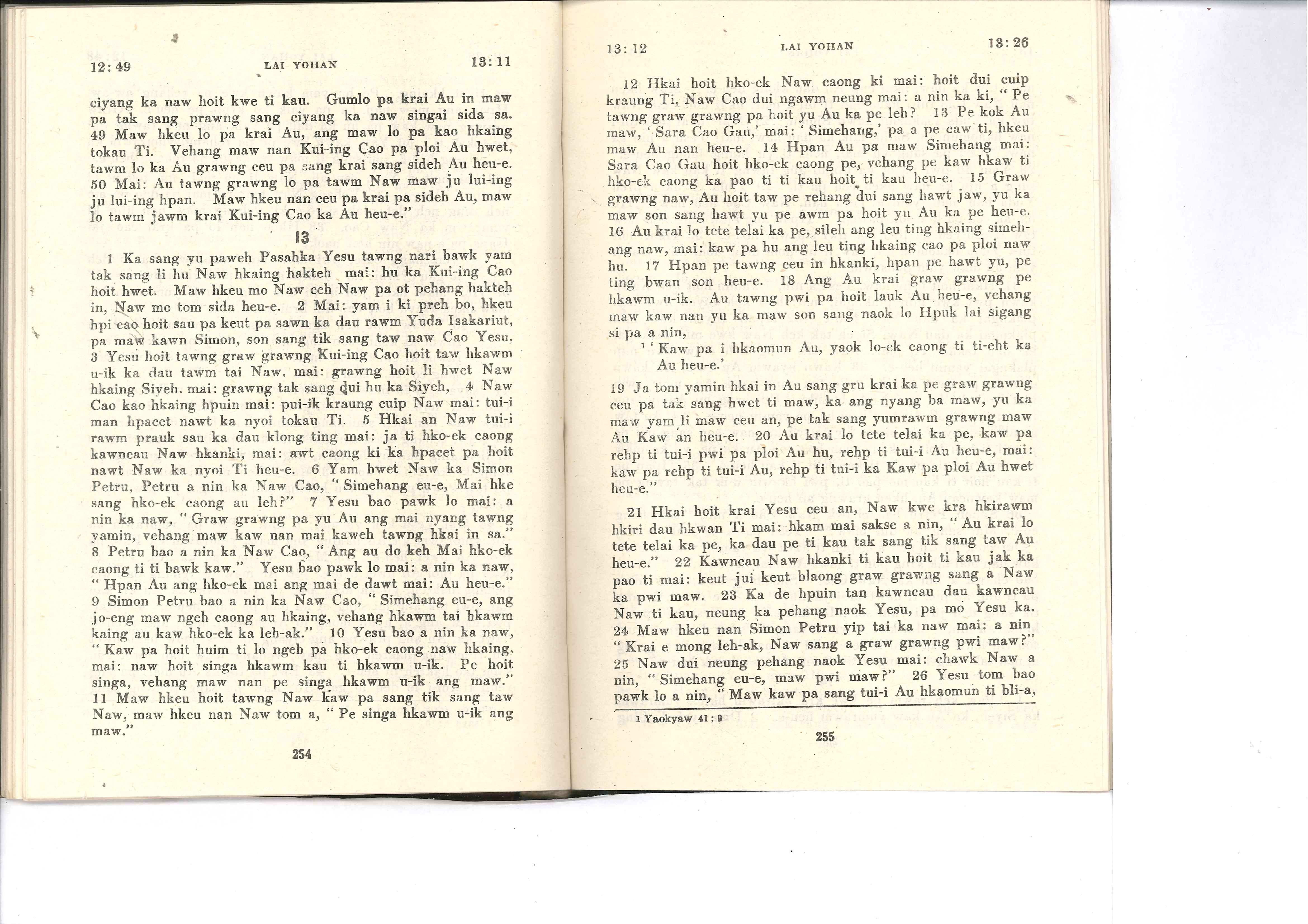 1985年佤文新约全书 约翰福音 12 章 49 节到 13 章 26 节