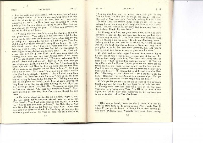 1985年佤文新约全书 约翰福音 20 章 8 节到 21 章 2 节