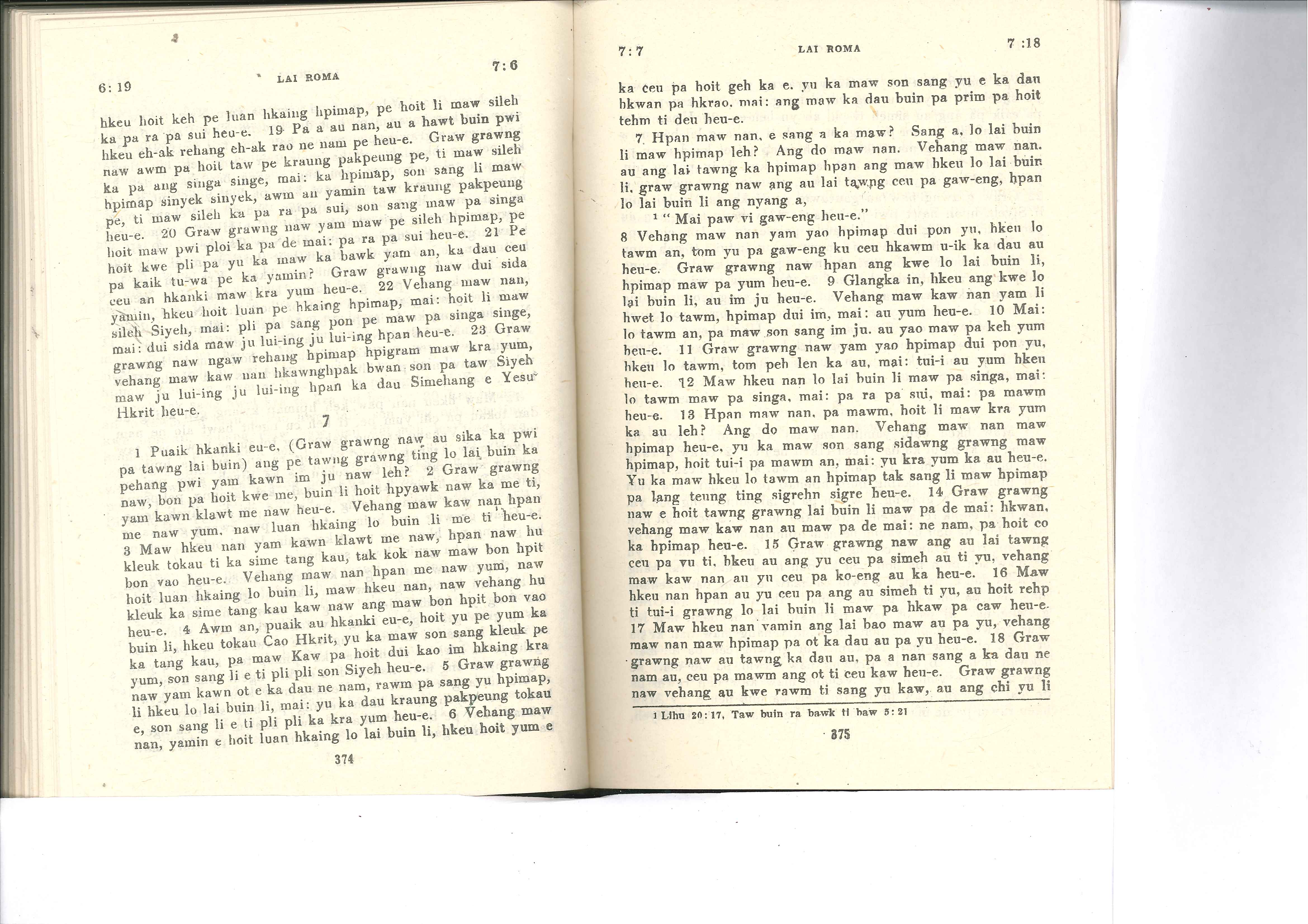 1985年佤文新约全书 罗马书 6 章 19 节到 7 章 18 节