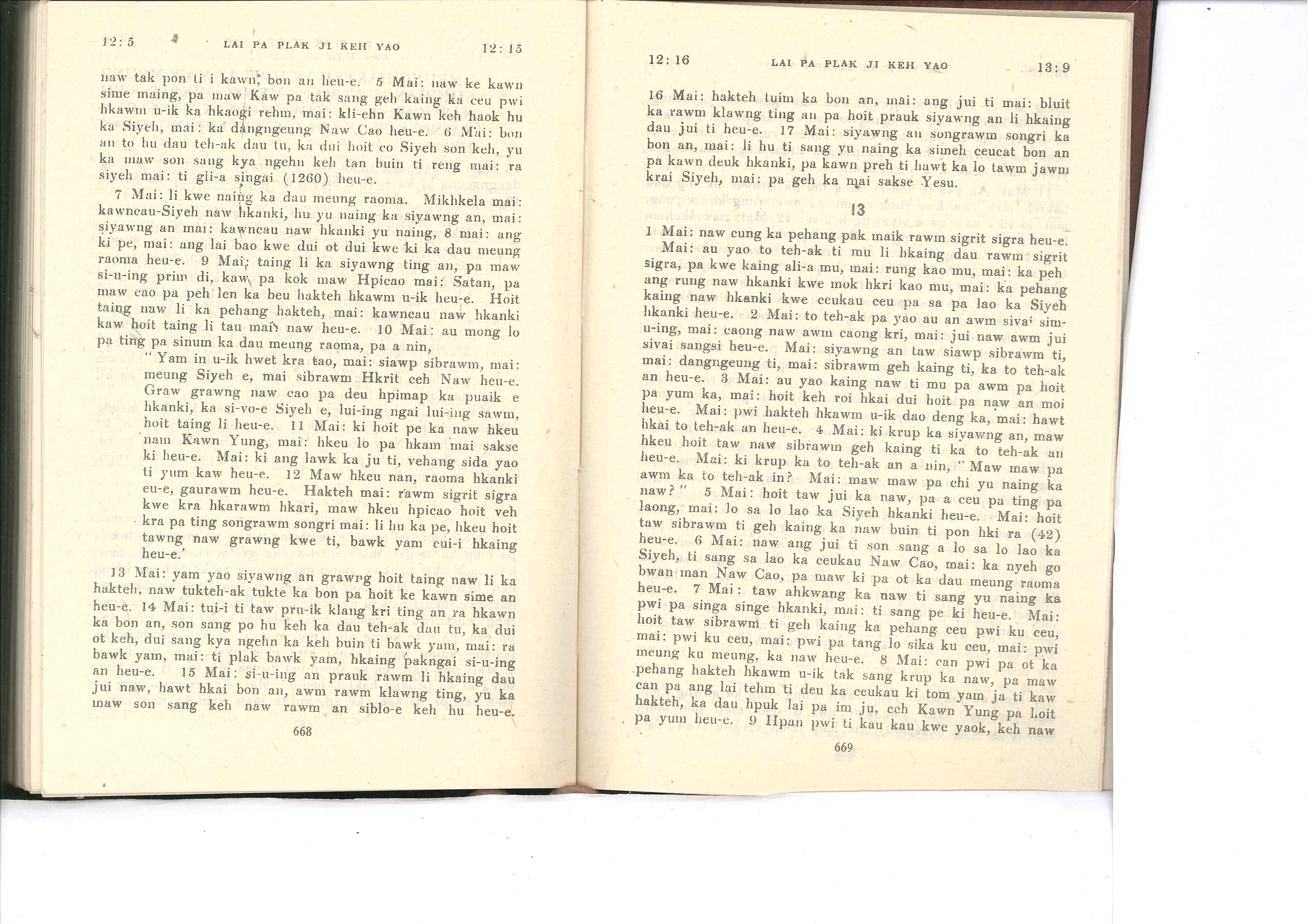 1985年佤文新约全书 启示录 12 章 5 节到 13 章 9 节