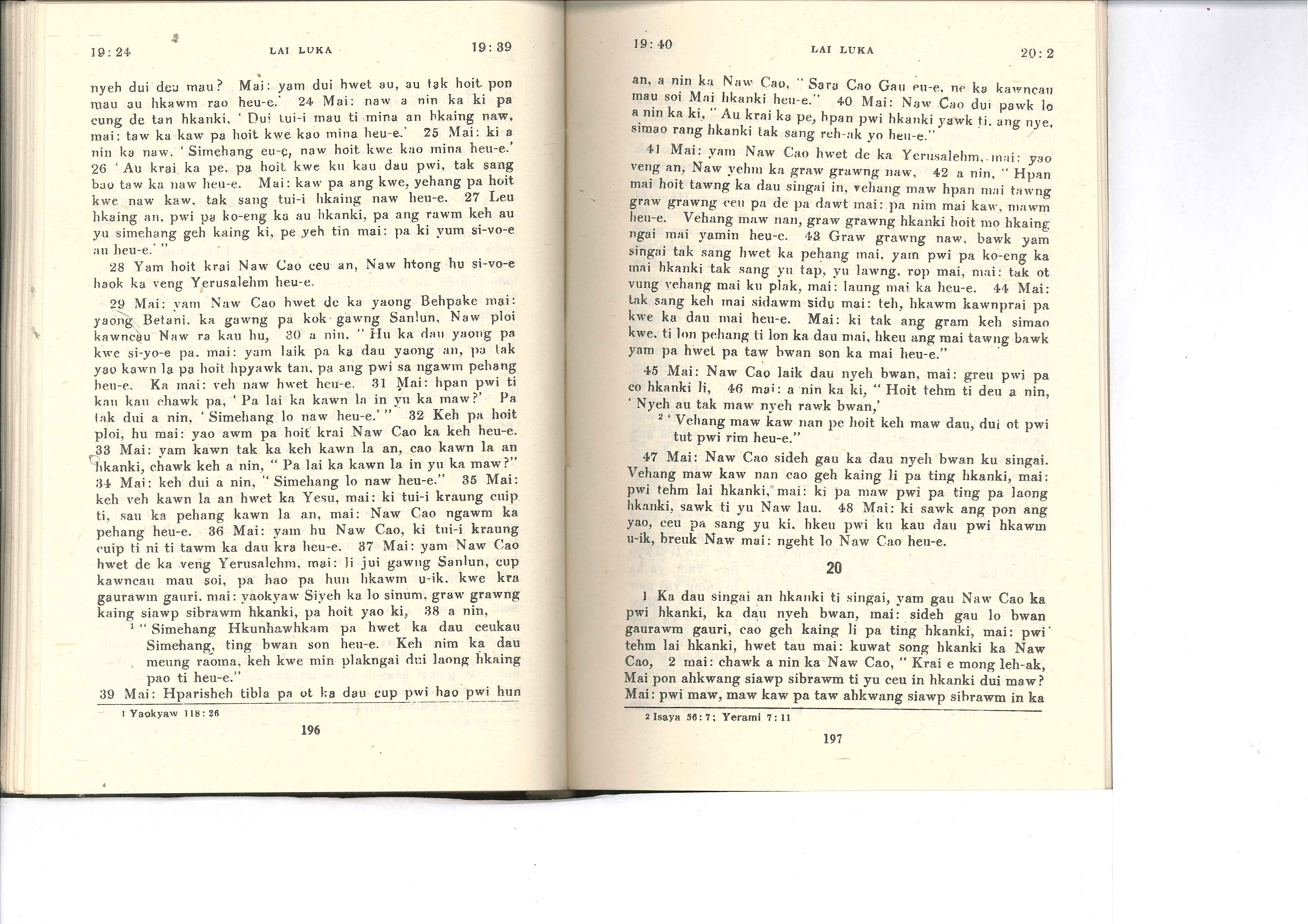 1985年佤文新约全书 路加福音 19 章 24 节到 20 章 2 节