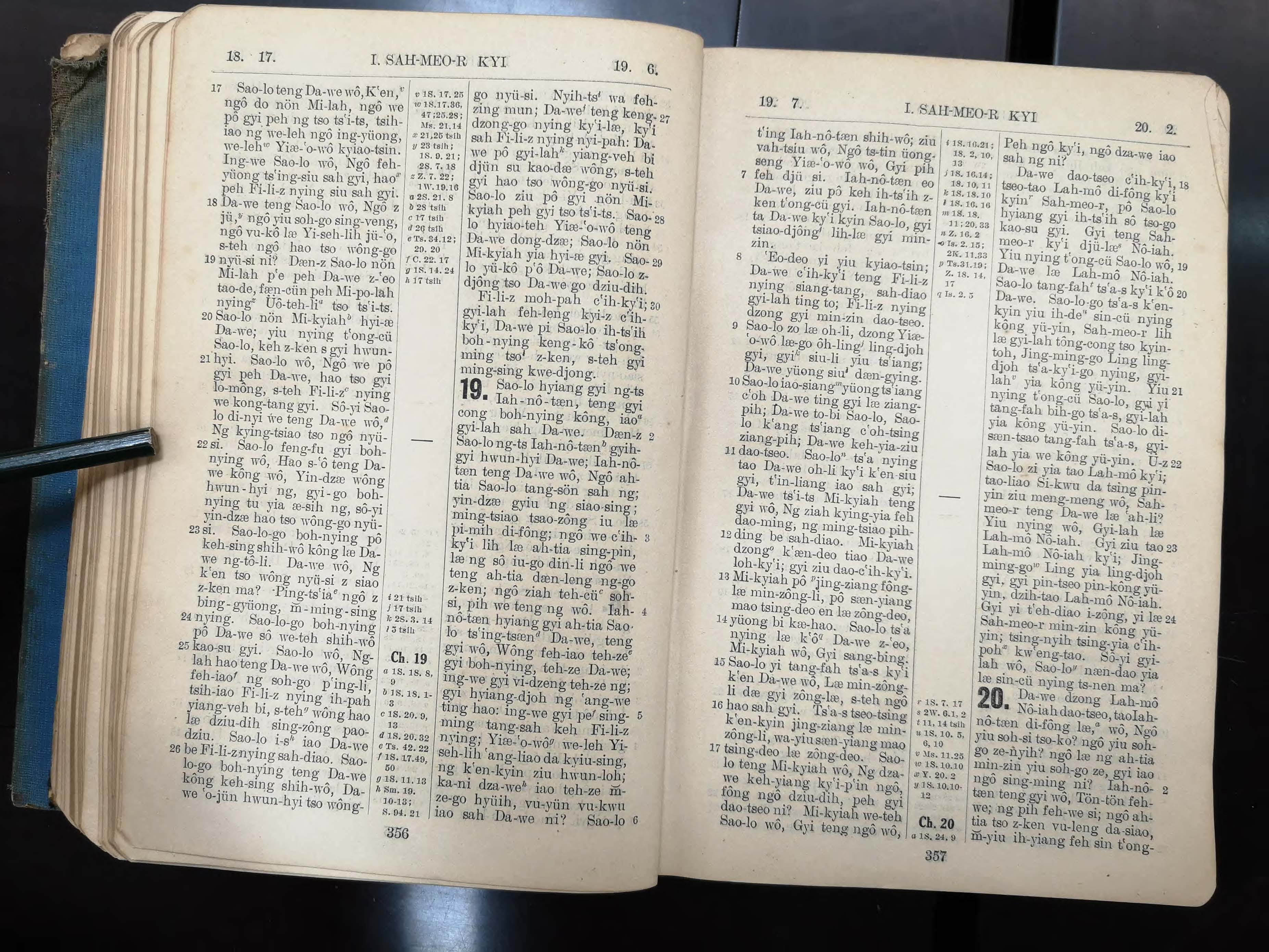 1923年宁波话罗马字旧约全书 撒母耳记上 18 章 17 节到 20 章 2 节