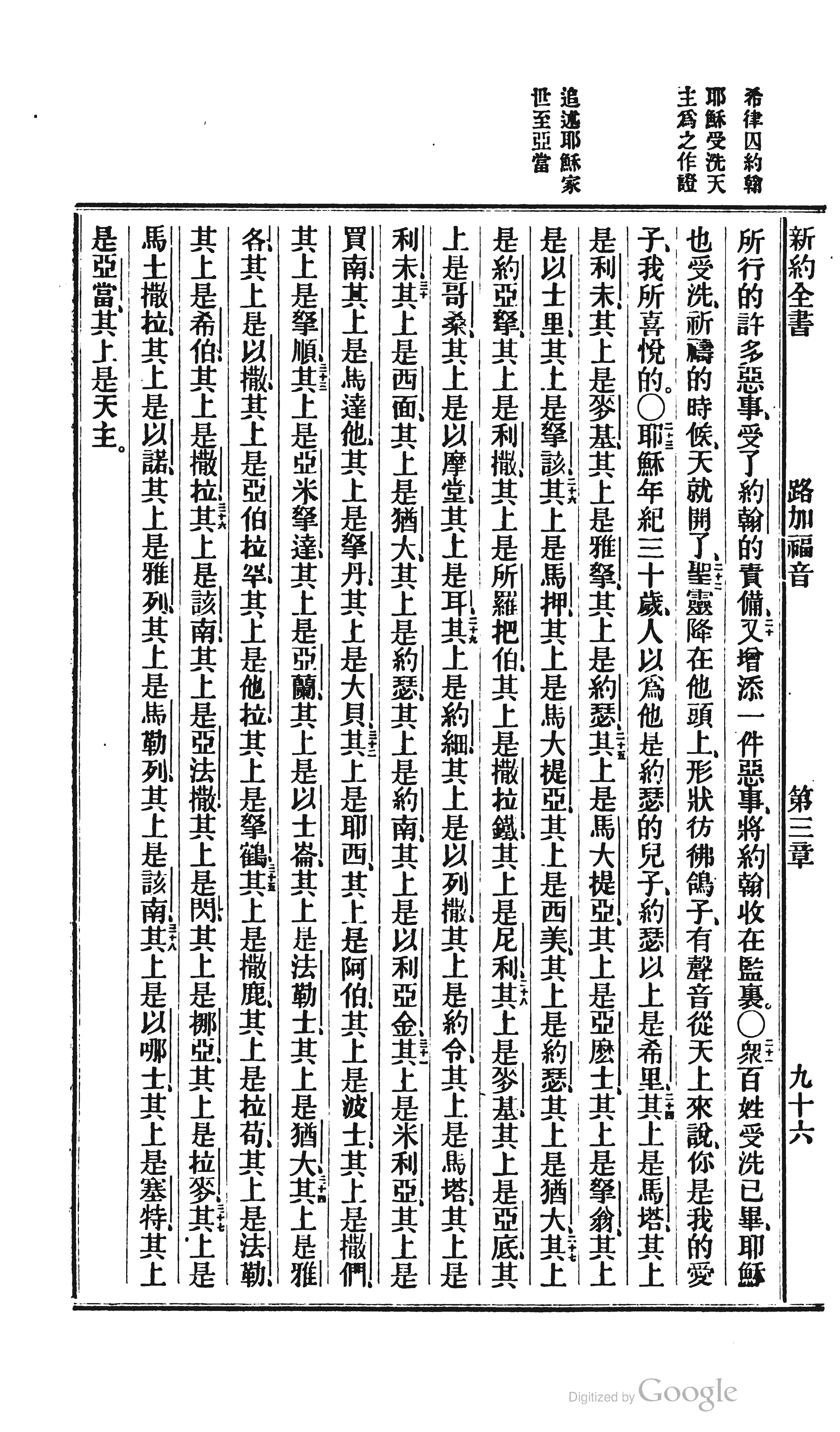 1872年北京官话译本新约 路加福音 3 章 20 节到 3 章 38 节