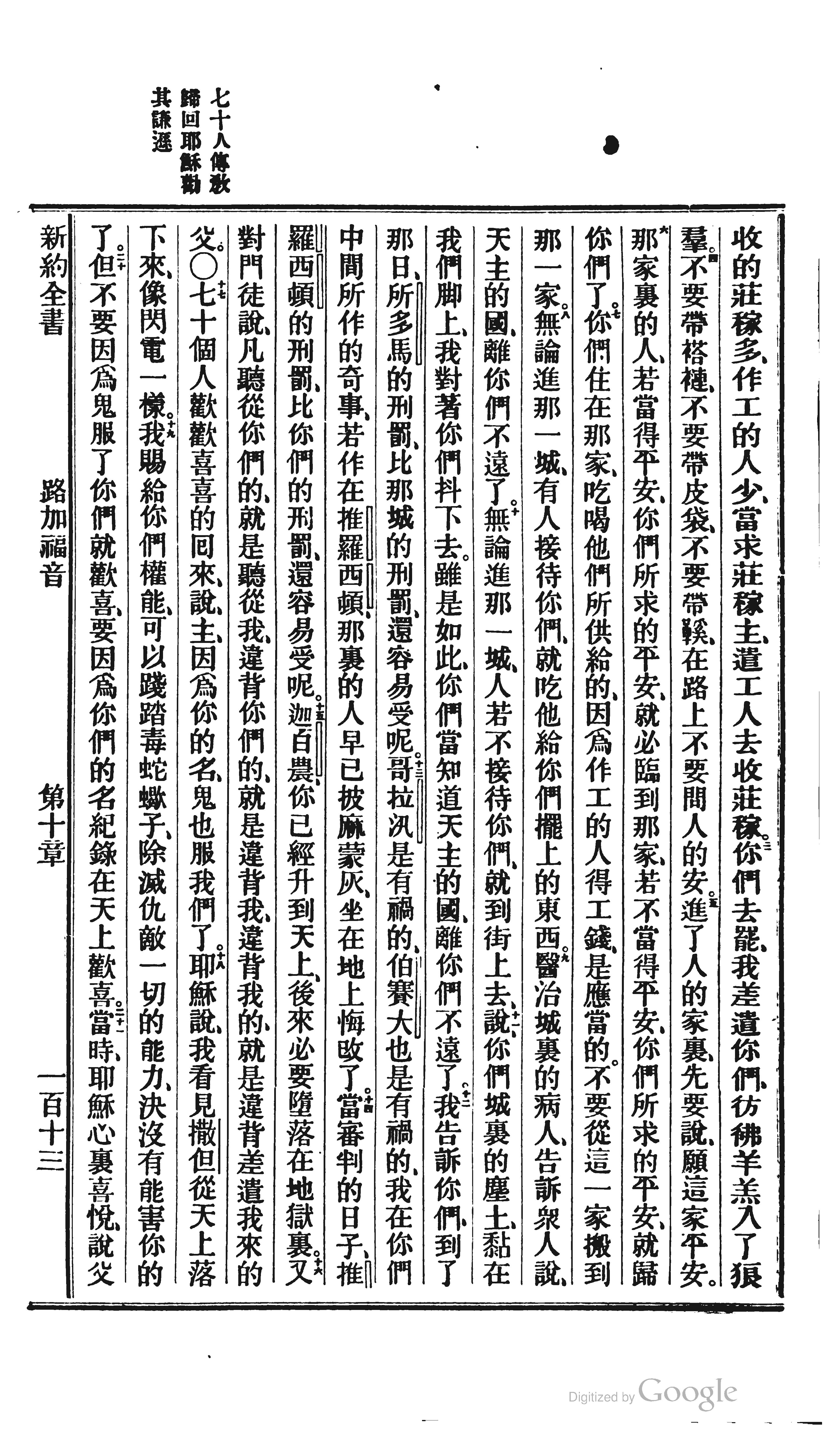 1872年北京官话译本新约 路加福音 10 章 3 节到 10 章 21 节