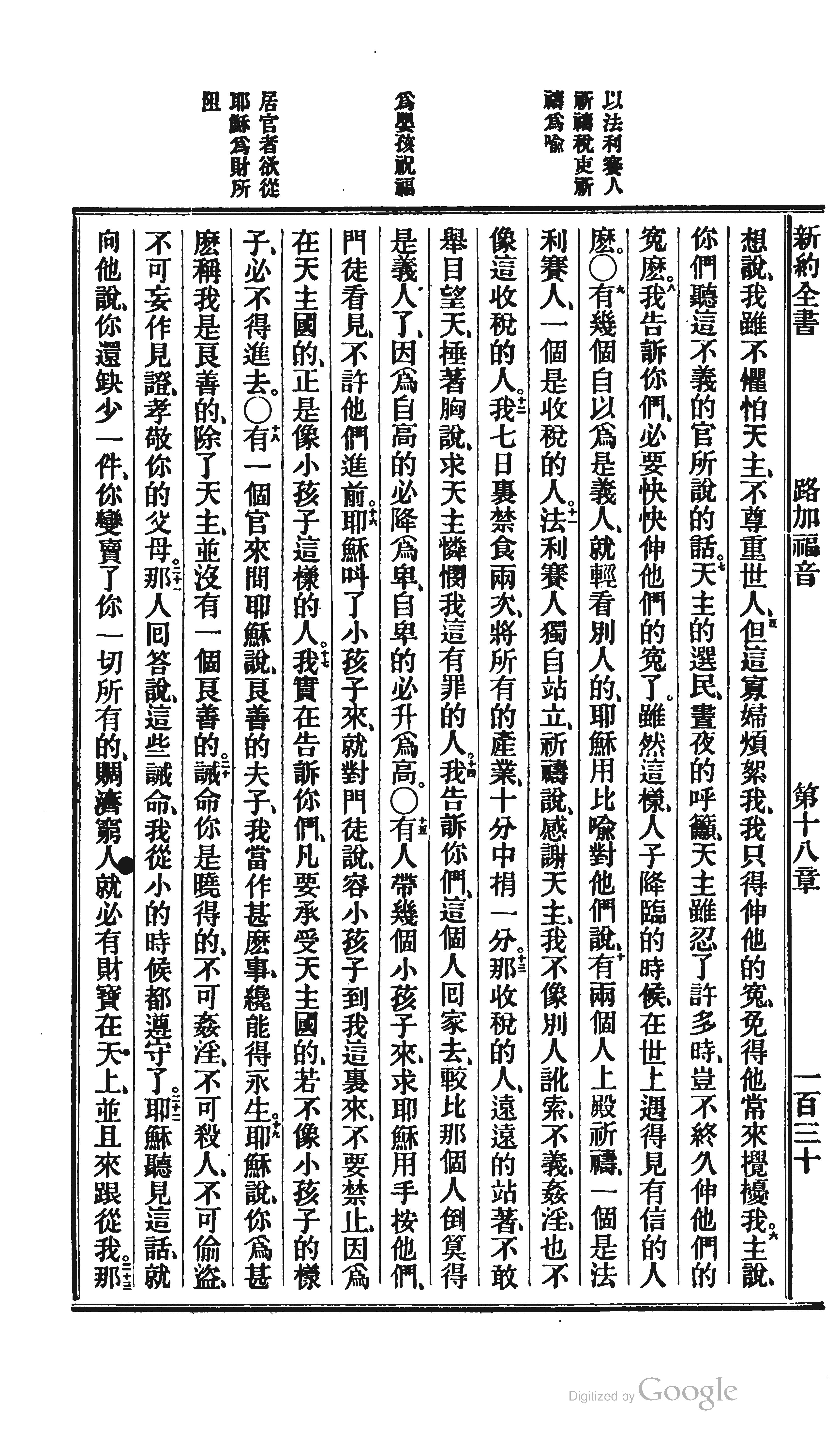 1872年北京官话译本新约 路加福音 18 章 5 节到 18 章 23 节
