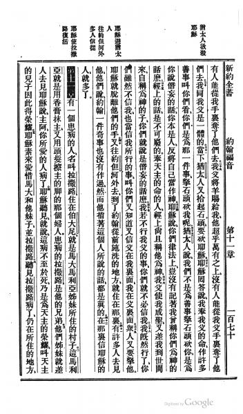 1872年北京官话译本新约 约翰福音 10 章 29 节到 11 章 6 节