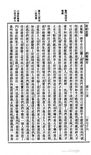 1872年北京官话译本新约 约翰福音 13 章 5 节到 13 章 26 节