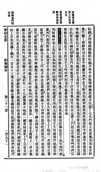 1872年北京官话译本新约 约翰福音 20 章 25 节到 21 章 12 节