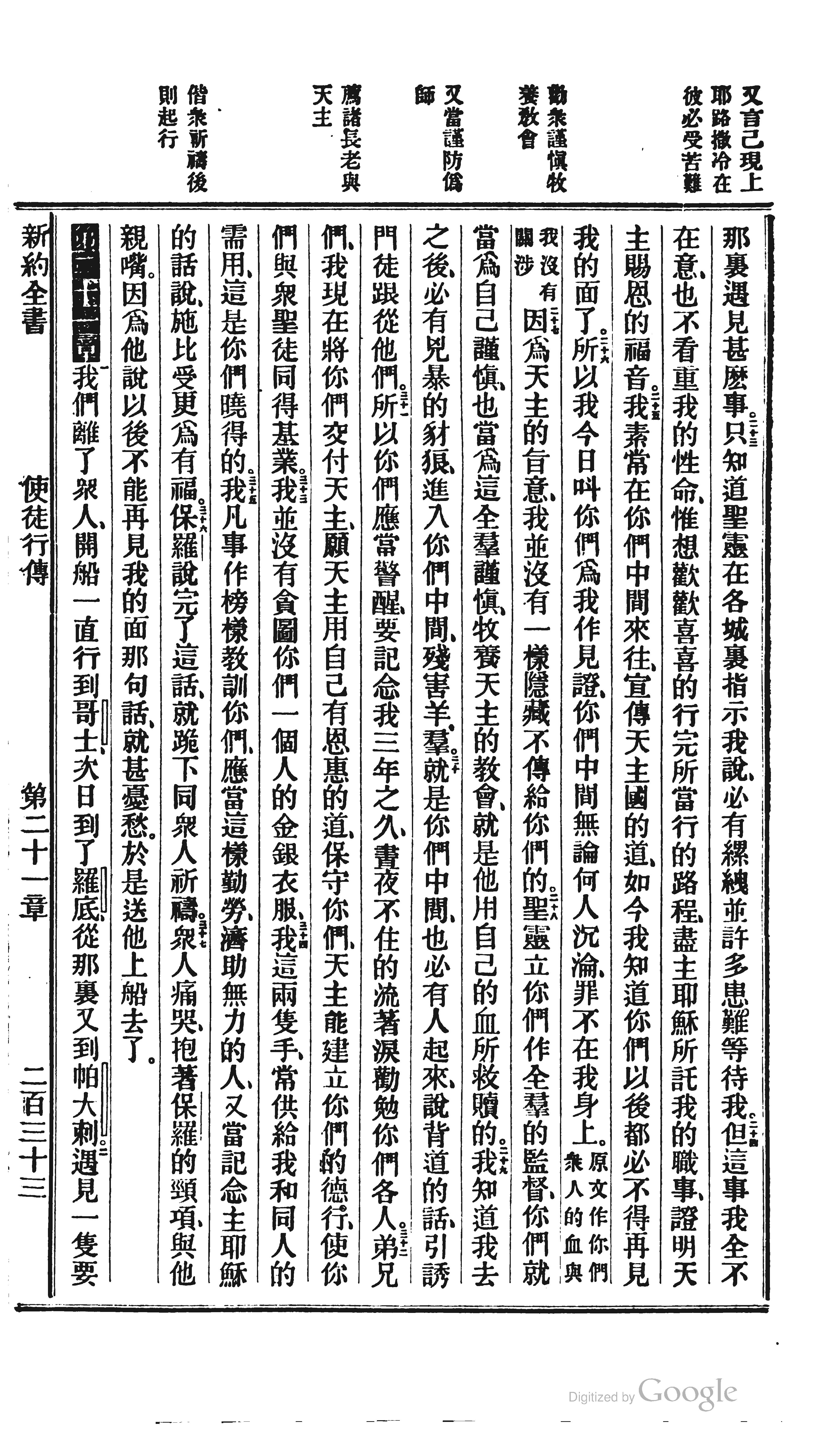 1872年北京官话译本新约 使徒行传 20 章 23 节到 21 章 2 节