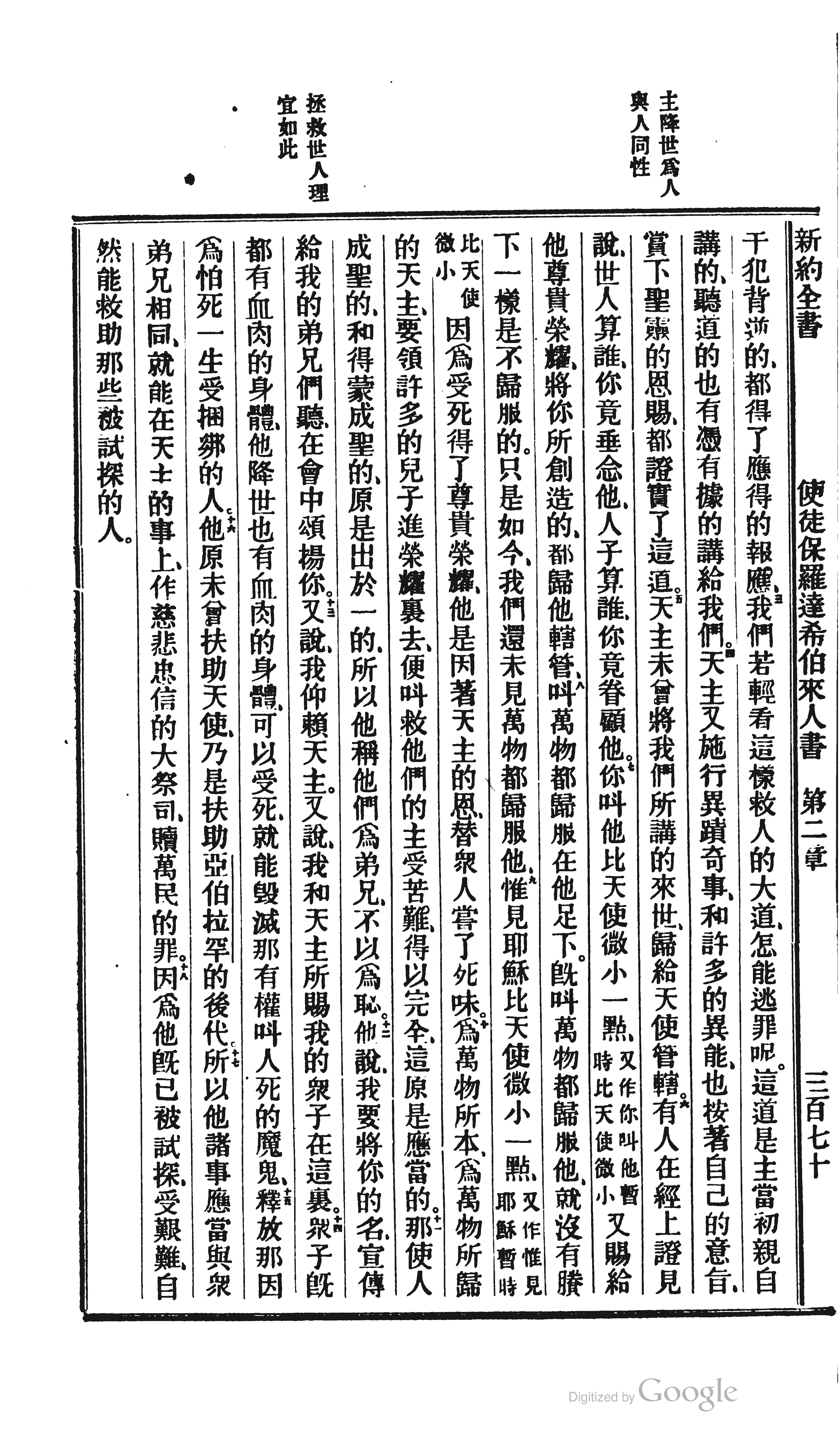 1872年北京官话译本新约 希伯来书 2 章 3 节到 2 章 18 节