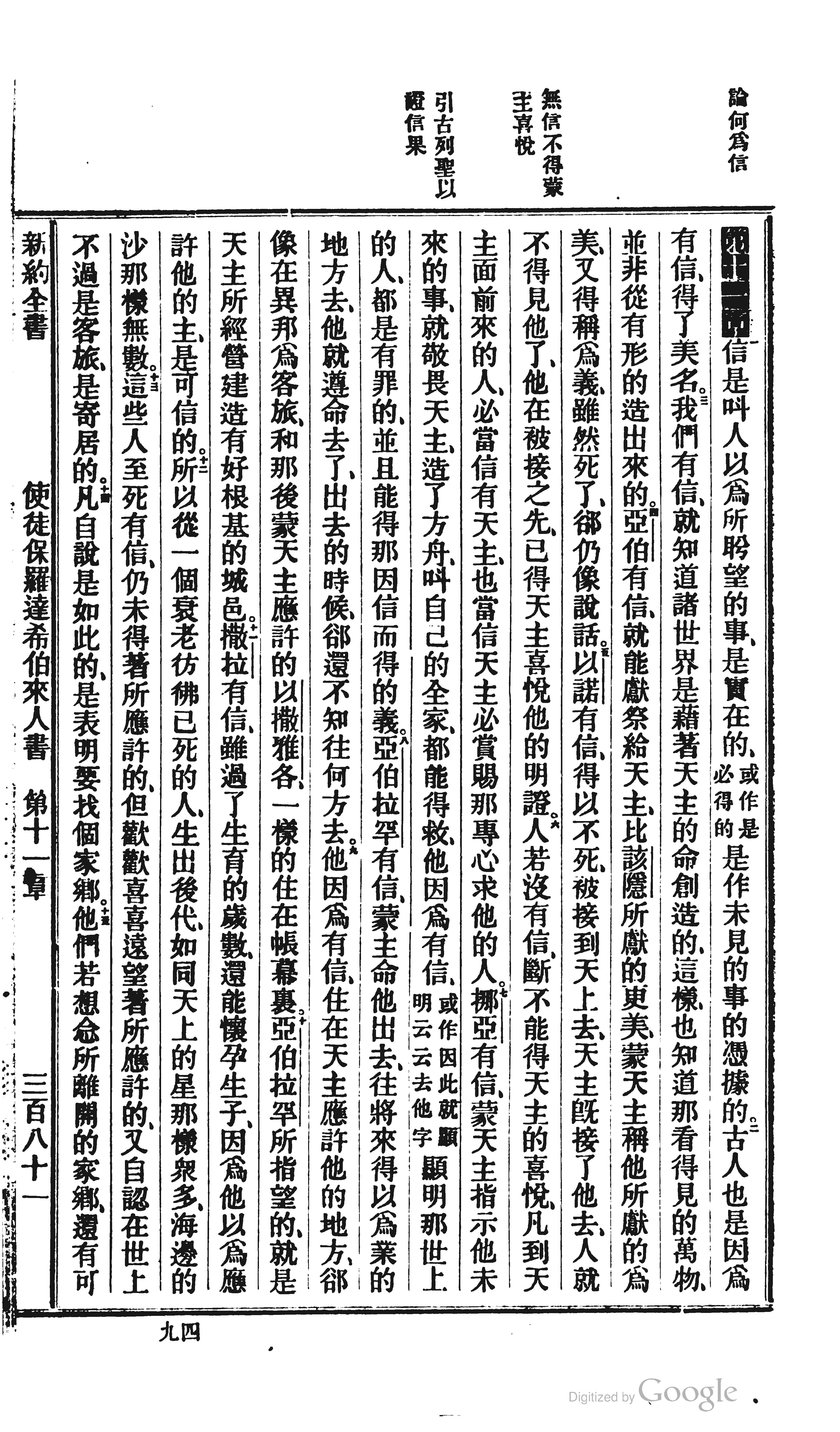 1872年北京官话译本新约 希伯来书 11 章 1 节到 11 章 15 节