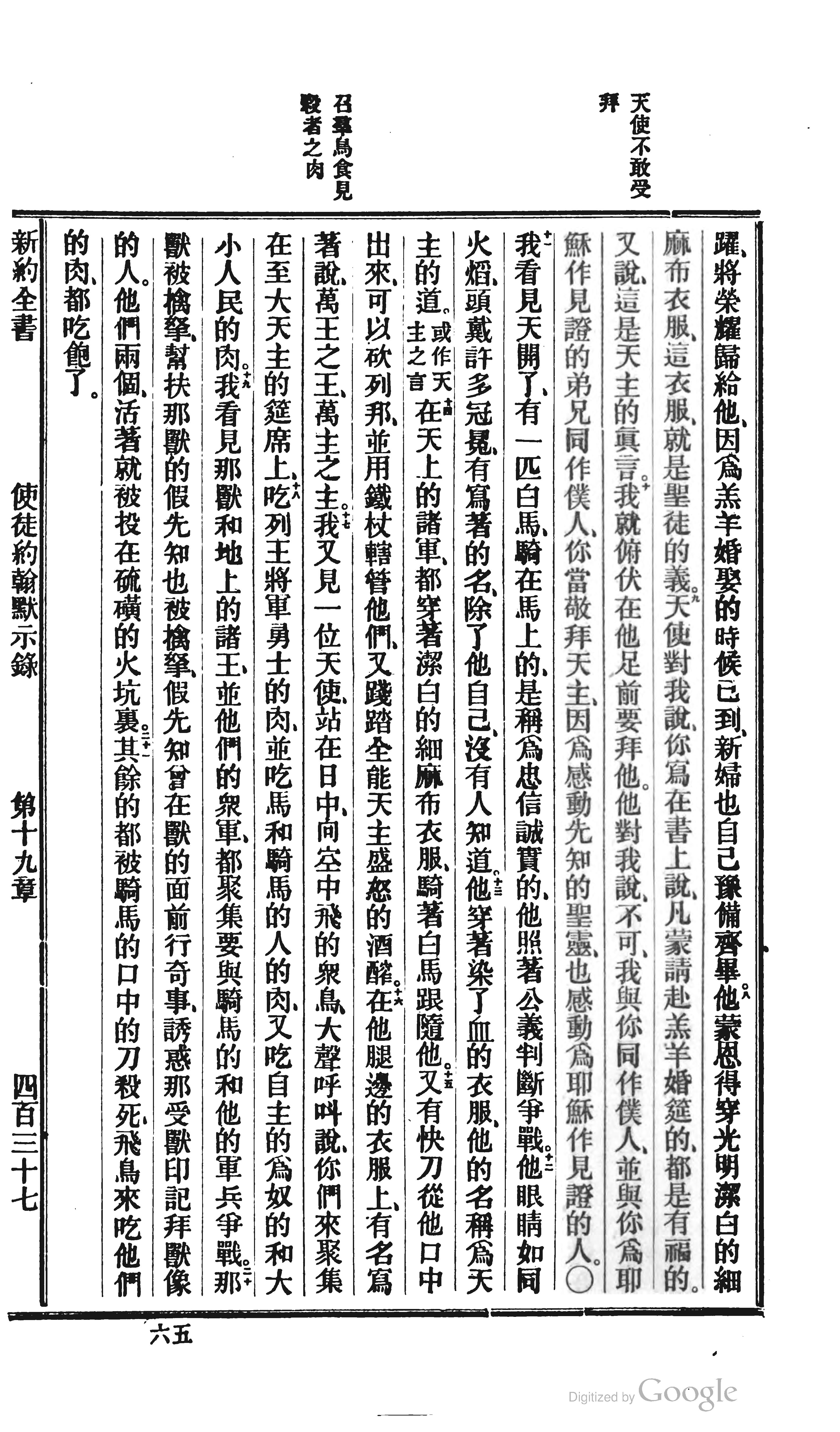 1872年北京官话译本新约 启示录 19 章 8 节到 19 章 21 节