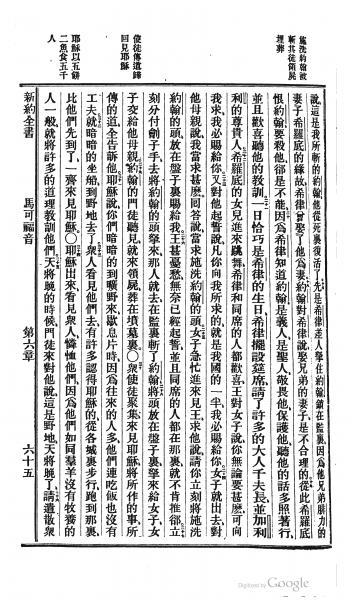 1872年北京官话译本新约 马可福音 6 章 16 节到 6 章 36 节