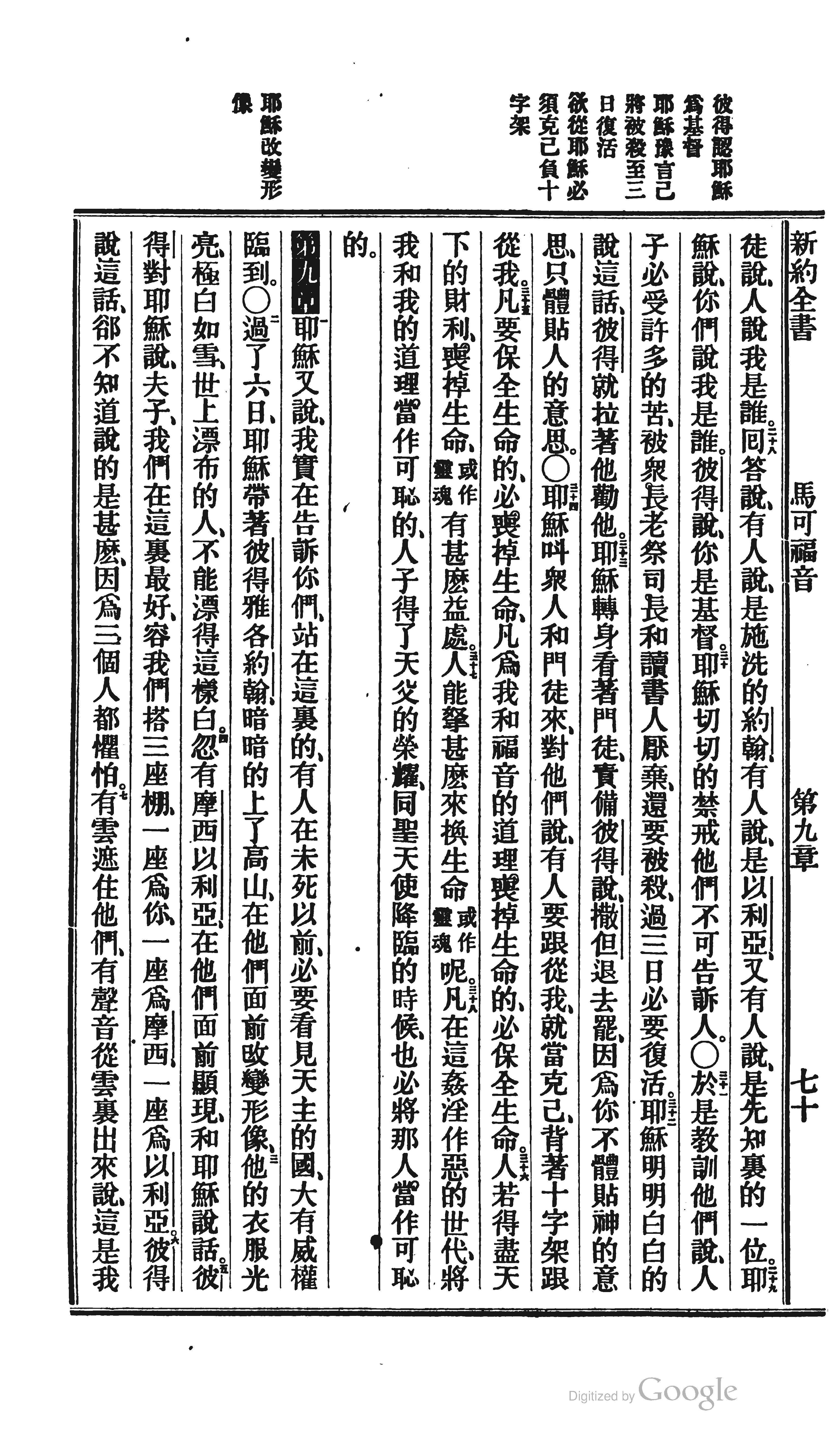 1872年北京官话译本新约 马可福音 8 章 27 节到 9 章 7 节