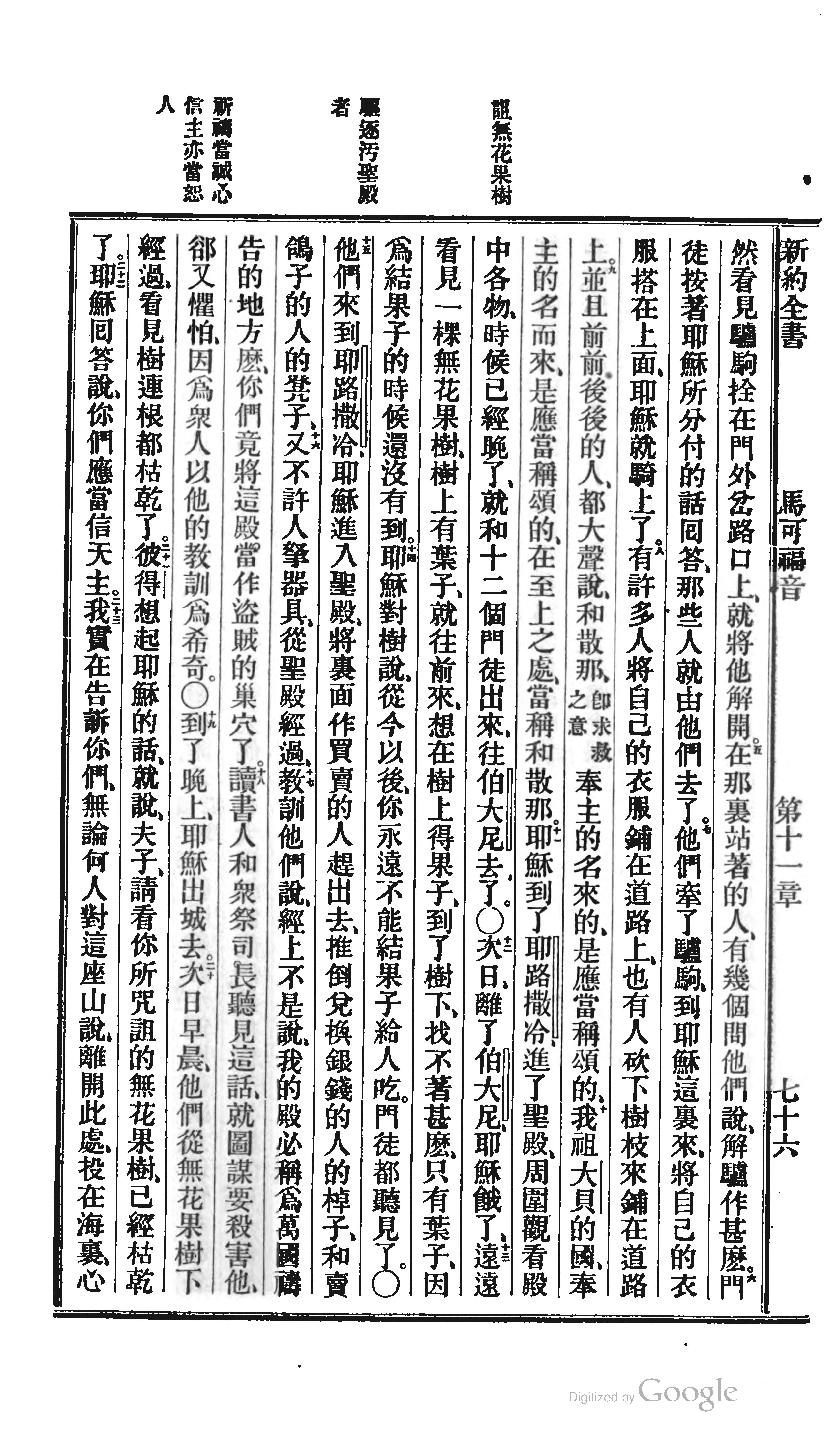 1872年北京官话译本新约 马可福音 11 章 5 节到 11 章 23 节