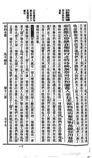 1872年北京官话译本新约 马可福音 11 章 24 节到 12 章 7 节