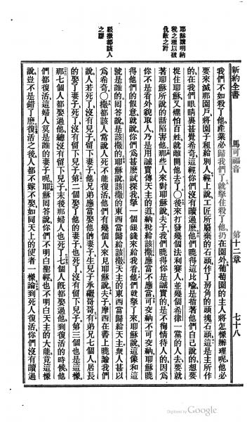 1872年北京官话译本新约 马可福音 12 章 8 节到 12 章 26 节