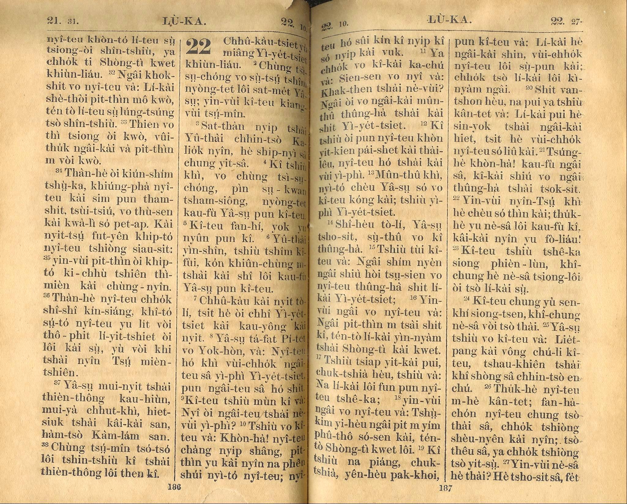 1924年新约全书 路加福音 21 章 31 节到 22 章 27 节