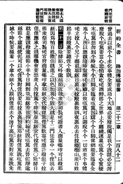 1922年新约全书 路加福音 21 章 33 节到 22 章 11 节