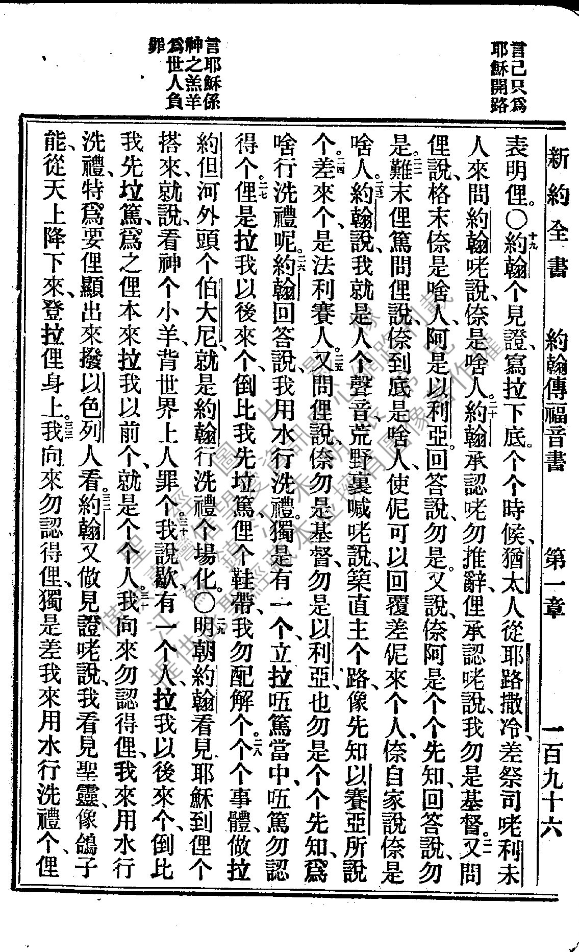 1922年新约全书 约翰福音 1 章 19 节到 1 章 33 节