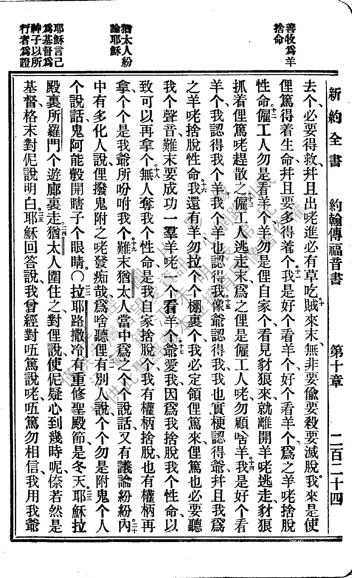 1922年新约全书 约翰福音 10 章 10 节到 10 章 25 节