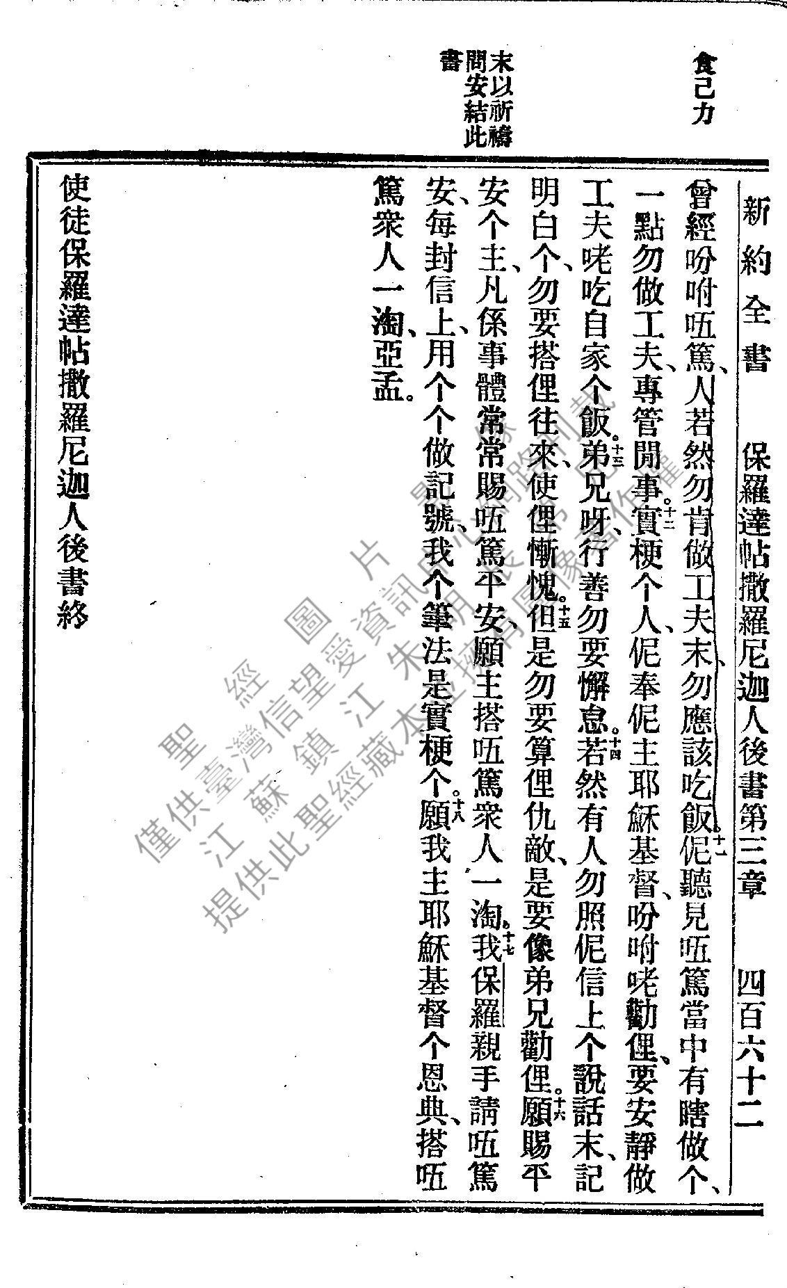 1922年新约全书 帖撒罗尼迦后书 3 章 11 节到 3 章 18 节