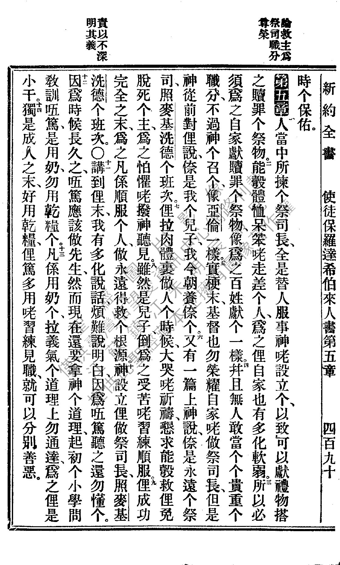1922年新约全书 希伯来书 5 章 1 节到 5 章 14 节