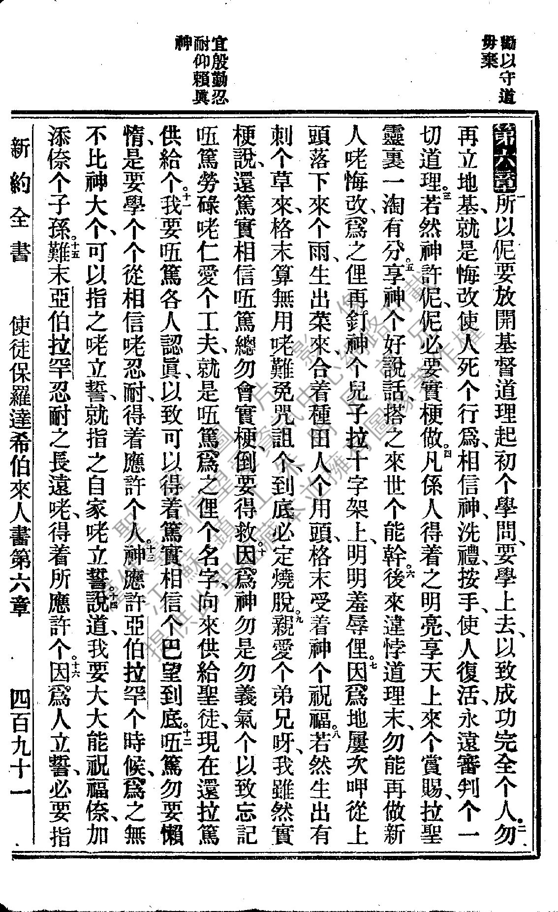 1922年新约全书 希伯来书 6 章 1 节到 6 章 16 节