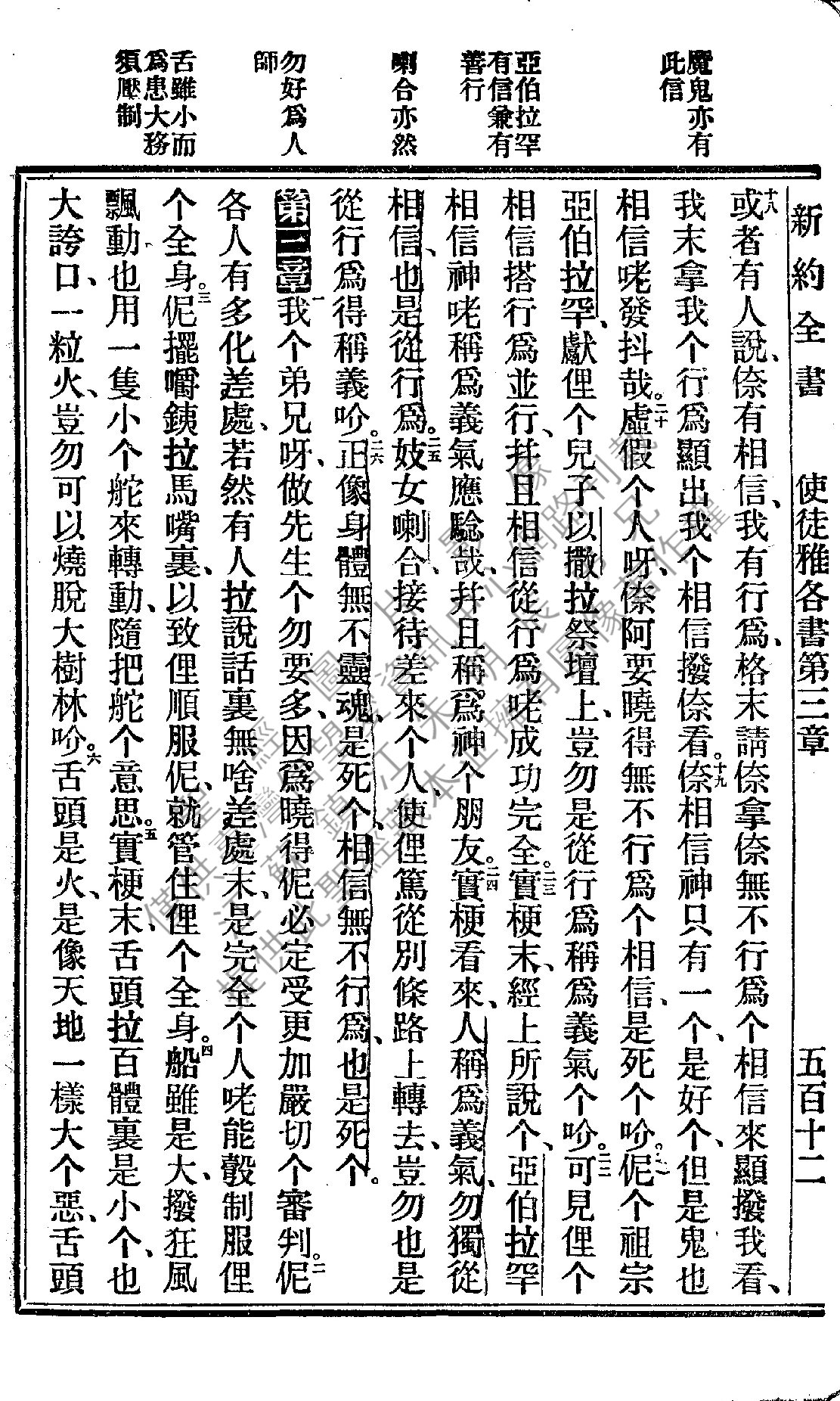 1922年新约全书 雅各书 2 章 18 节到 3 章 6 节