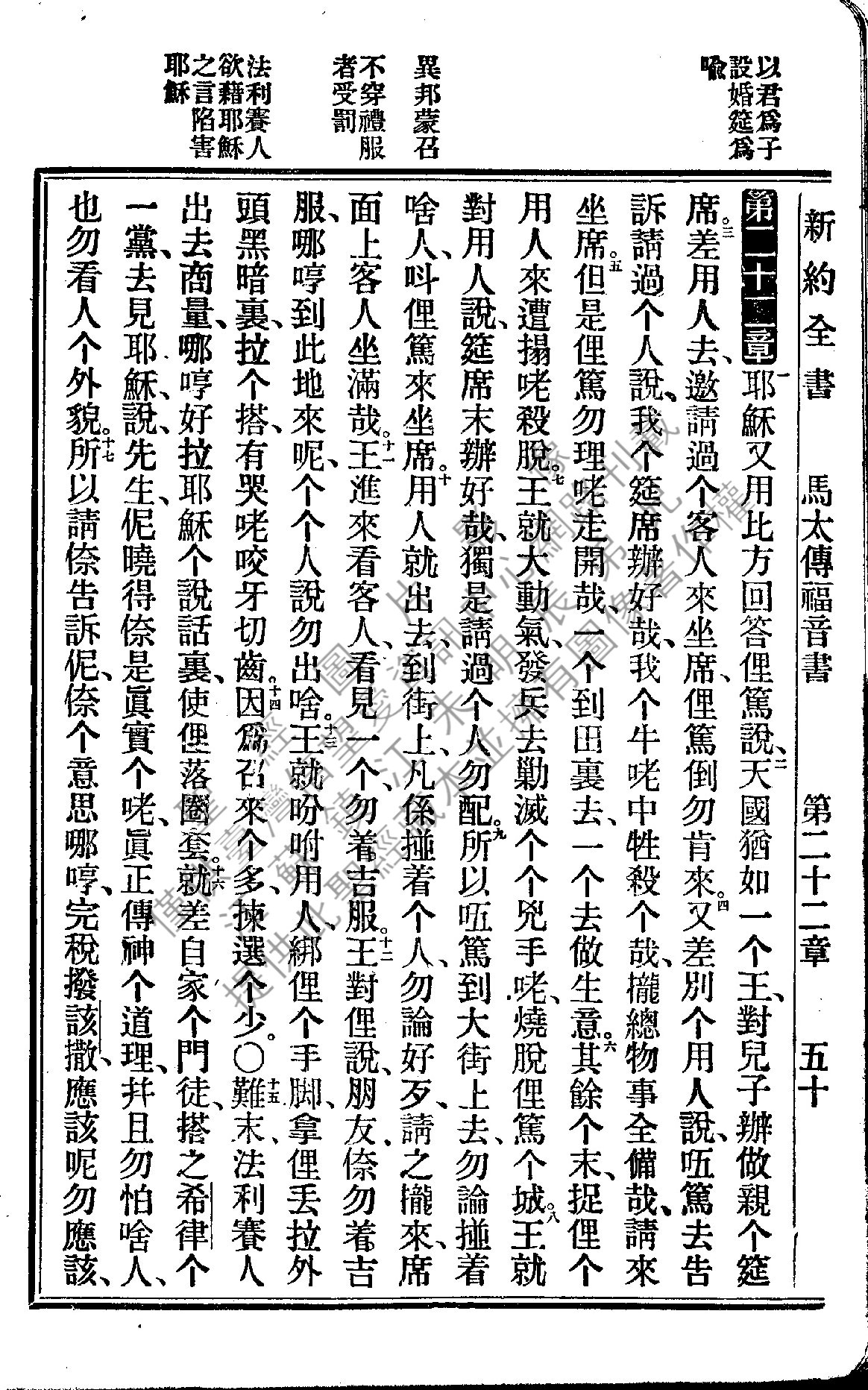 1922年新约全书 马太福音 22 章 1 节到 22 章 17 节